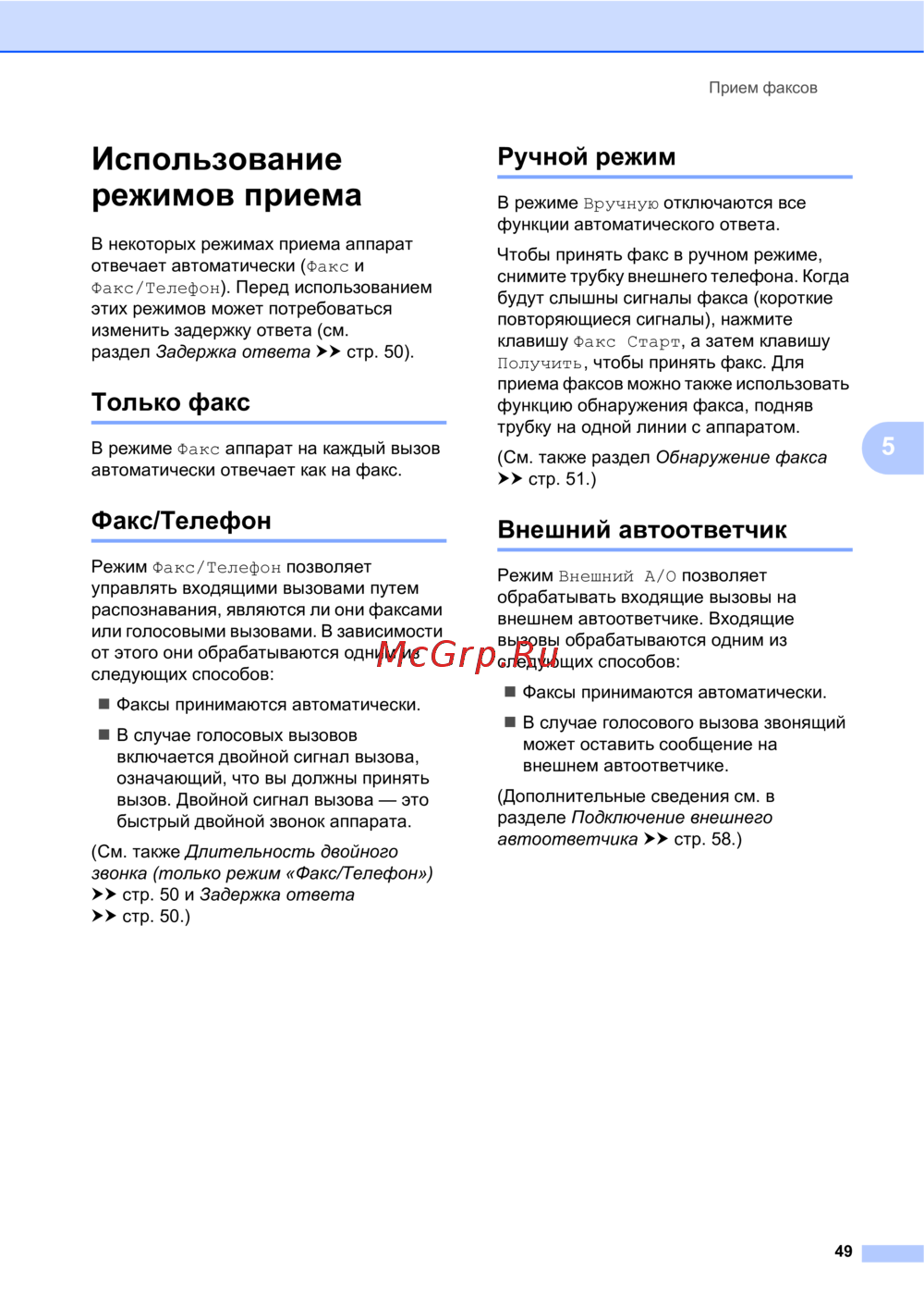 - Получение факса только для моделей mfc p.10