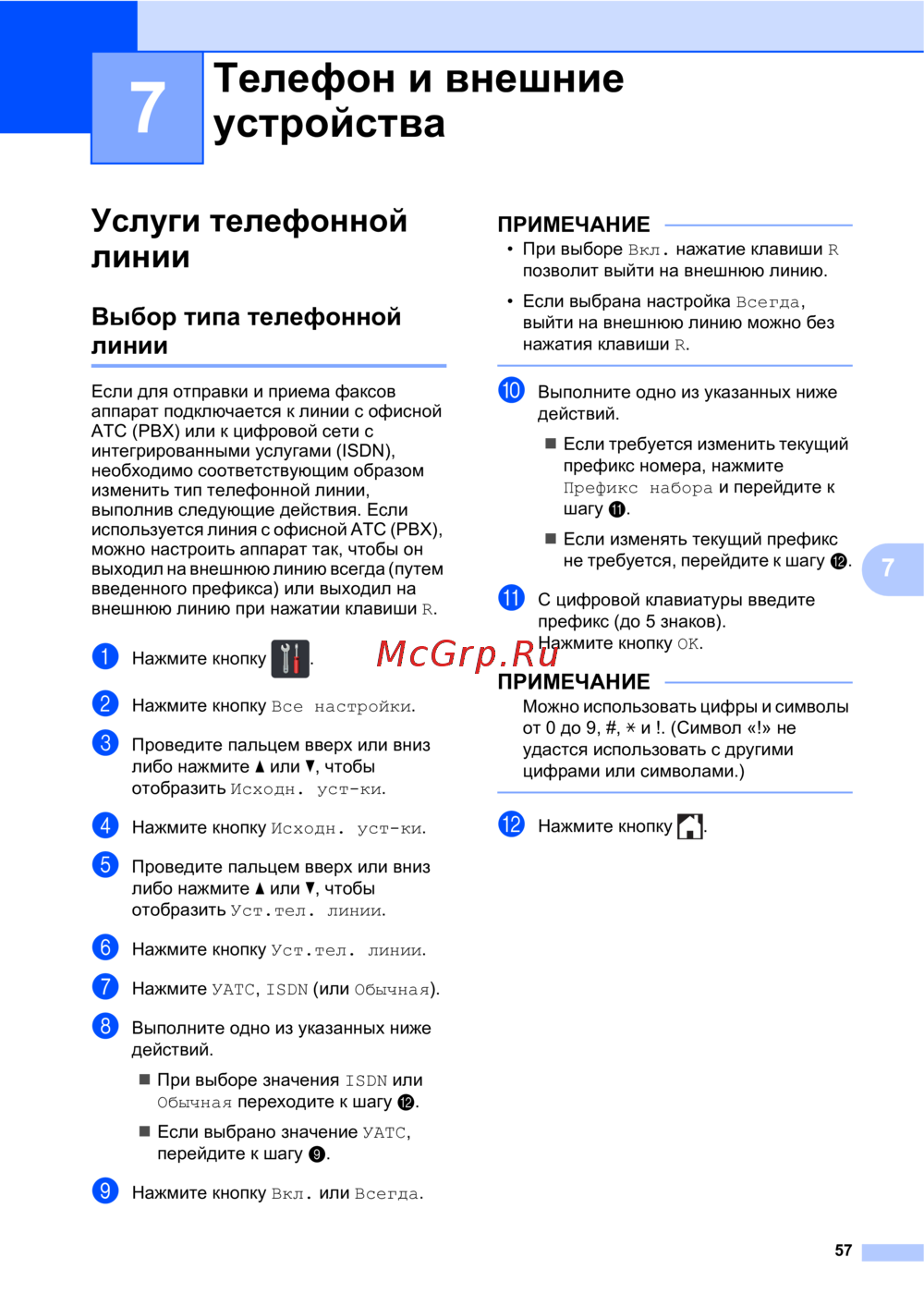 Brother MFC-L8850CDW — как настроить телефонную линию для факса с PBX или ISDN: пошаговое руководство [67/269]