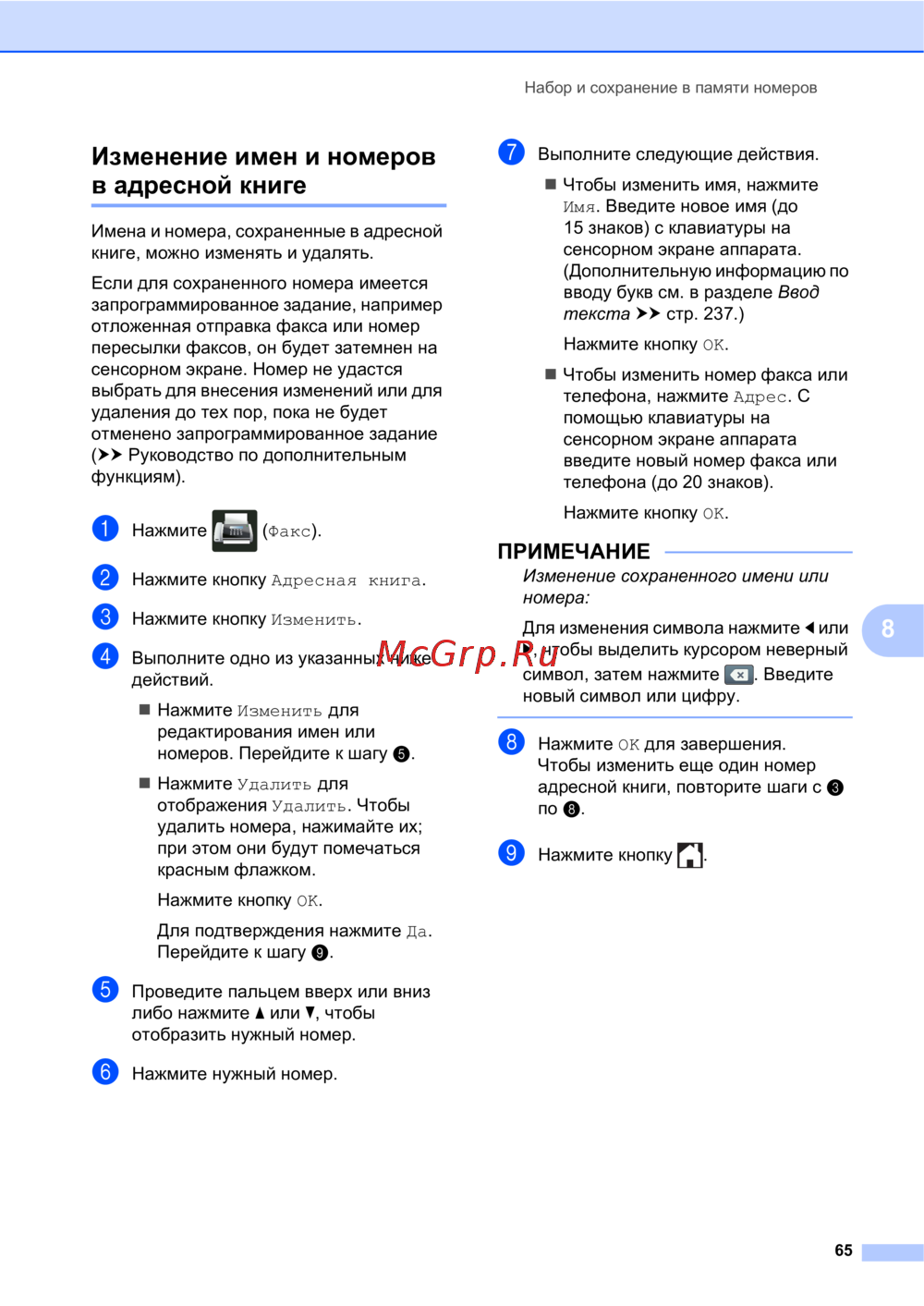 Brother MFC-L8850CDW — изменение и удаление номеров в адресной книге устройства [75/269]