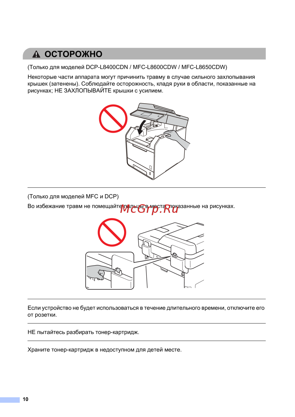 Brother MFC-L8850CDW — осторожность при использовании офисной техники: советы и рекомендации [10/24]