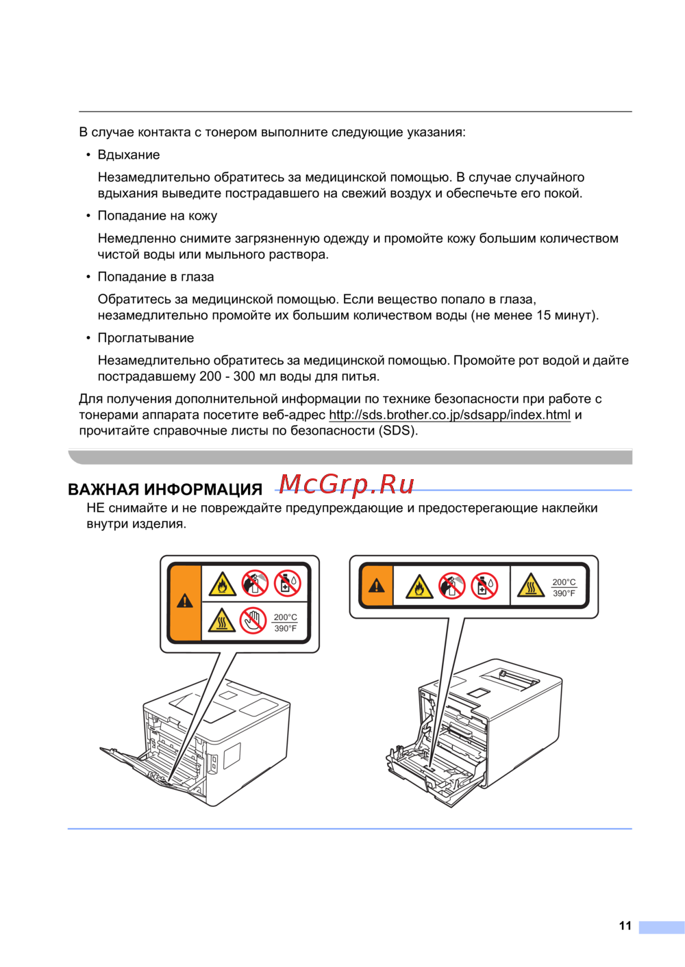 Brother MFC-L8850CDW — безопасность при работе с тонерами: важные рекомендации [11/24]