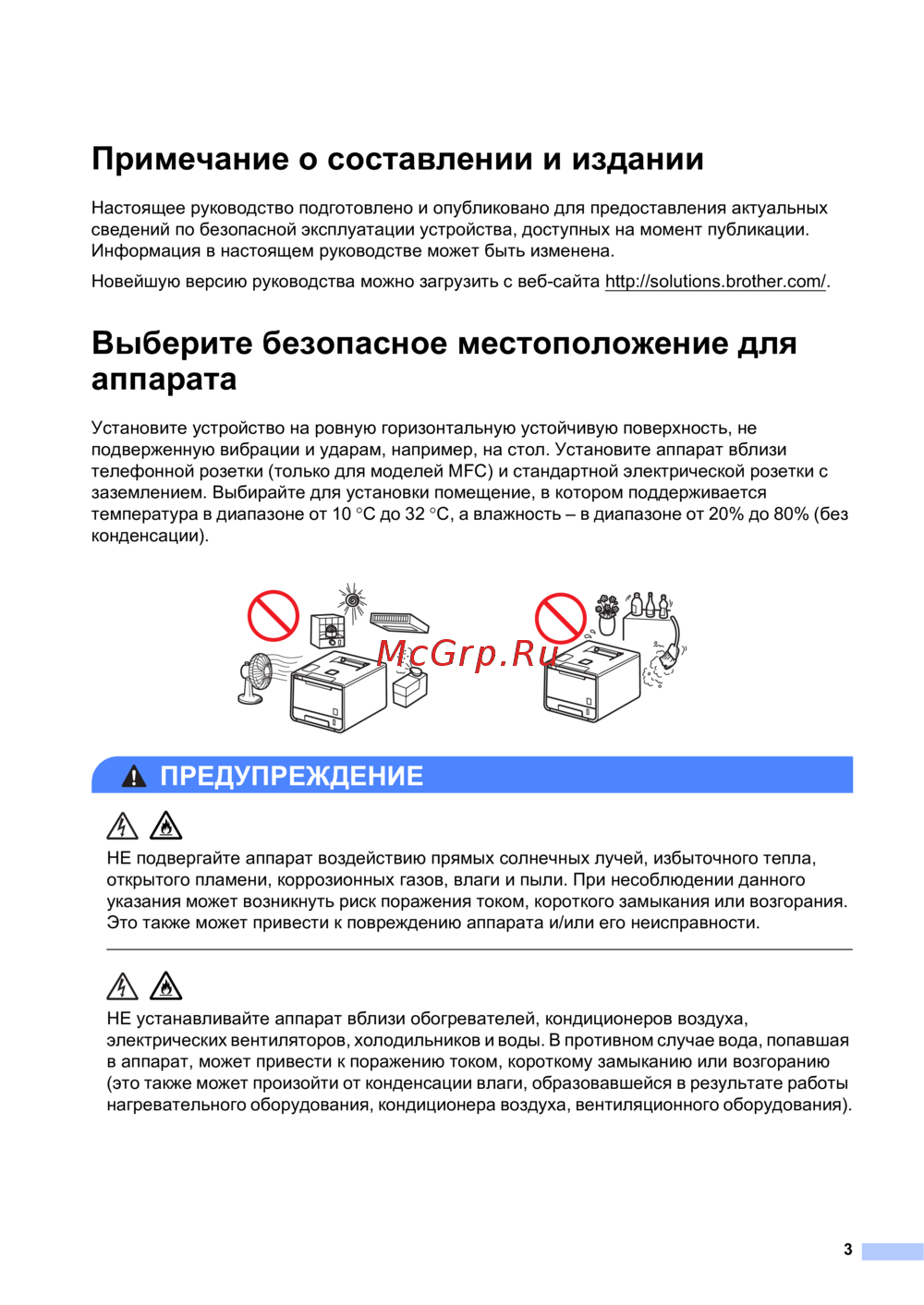 Brother MFC-L8850CDW — руководство по безопасной эксплуатации устройства: советы и рекомендации [3/24]