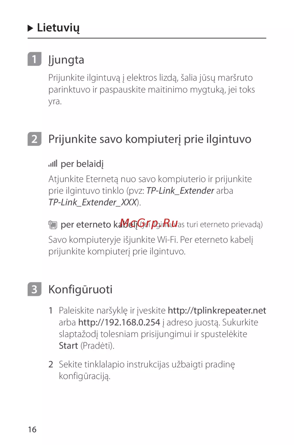 1 Paleiskite naršyklę ir įveskite http://tplinkrepeater.net