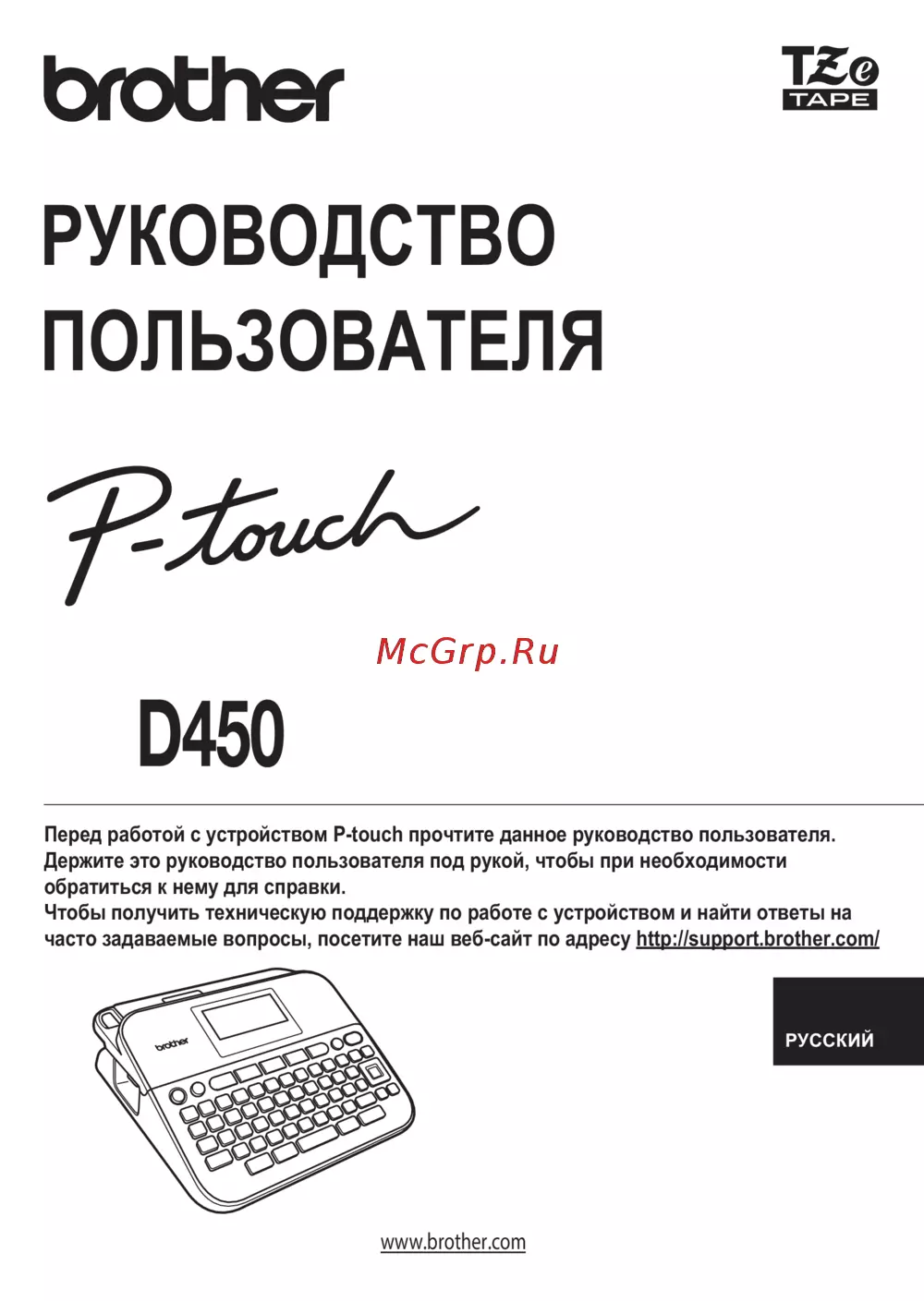 Перед работой с устройством P-touch прочтите данное руководство пользователя.