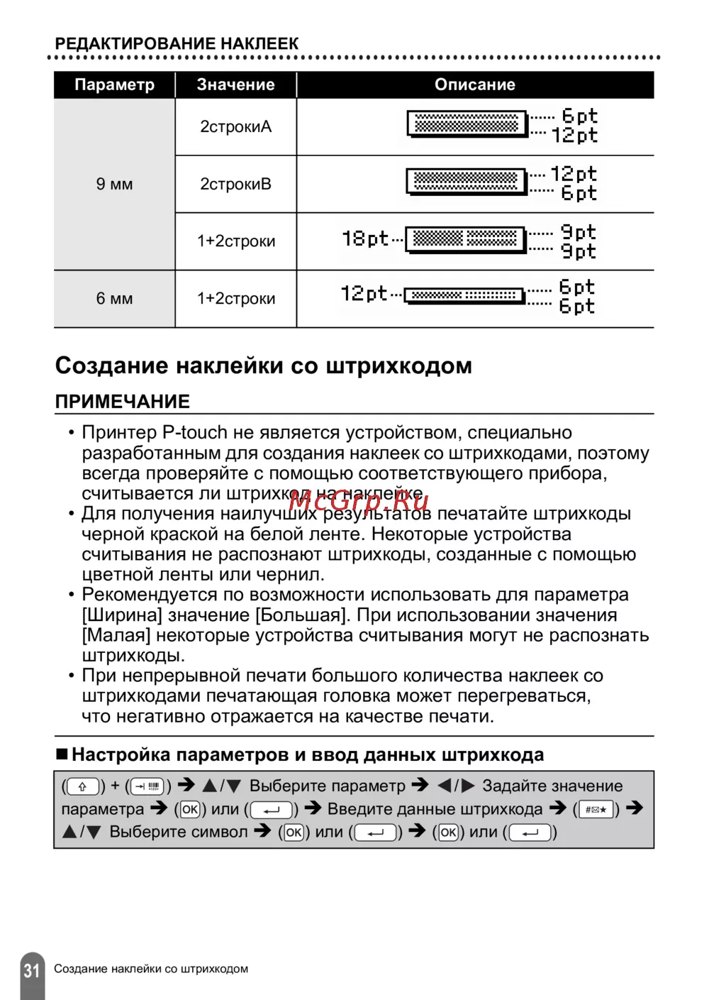 - Параметры штрихкода p.35
