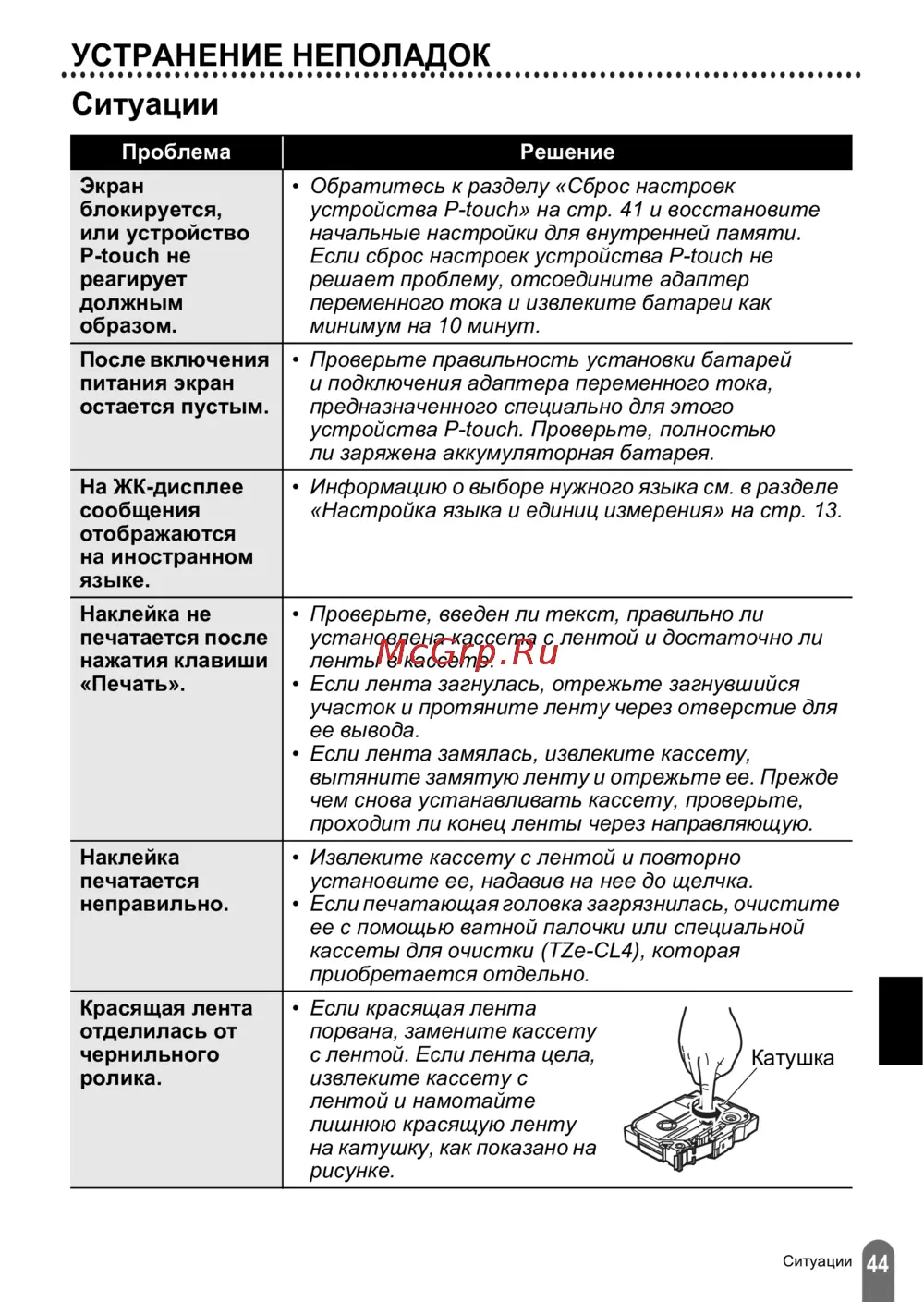 - Сброс настроек и обслуживание устройства p touch p.44