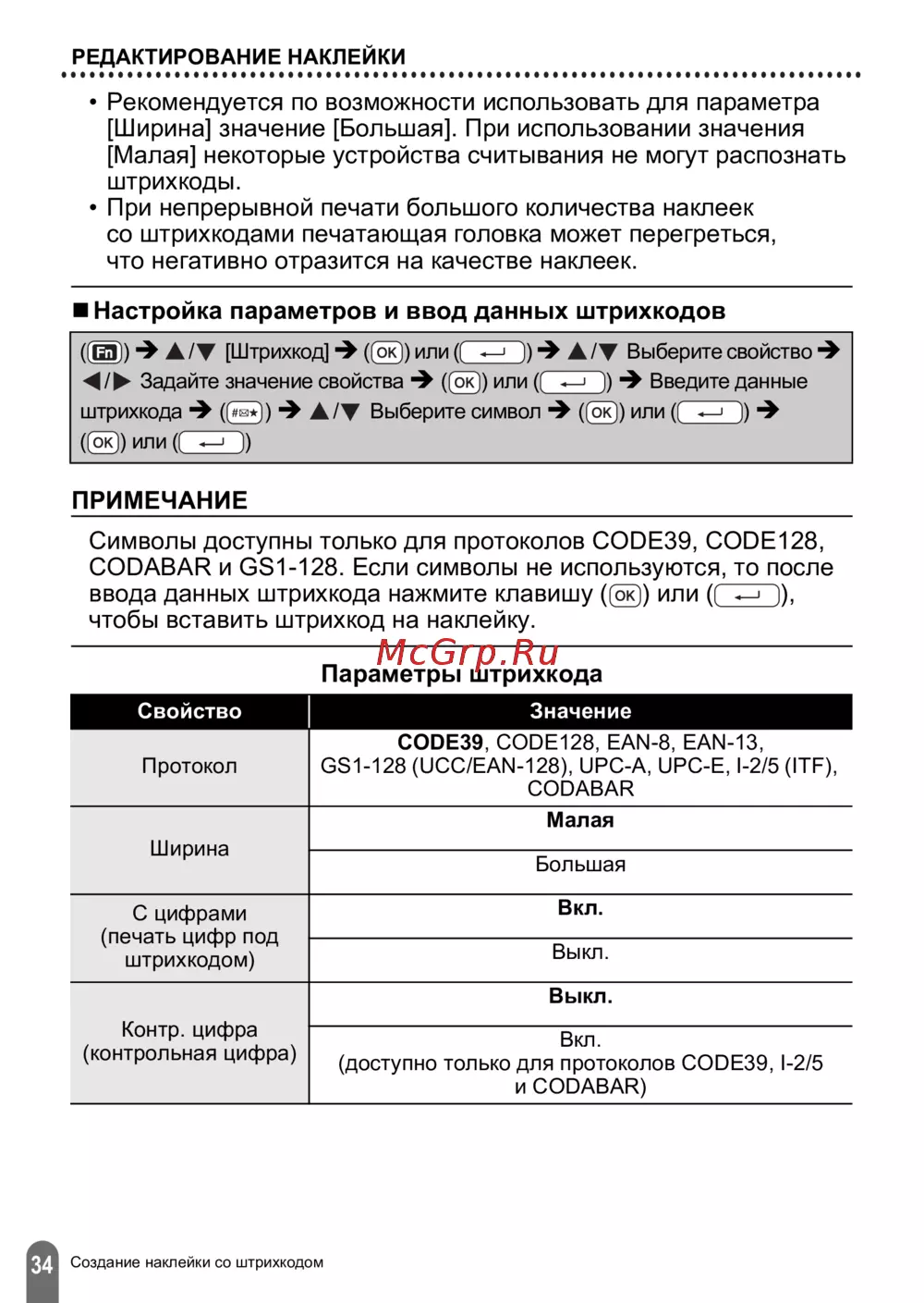 ![Brother PT-D600 [36/59] Символы доступны только для протоколов code39 code128 codabar и gs1 128 если символы не используются то после ввода данных штрихкода нажмите клавишу или чтобы вставить штрихкод...](/views2/1470152/page36/bg24.png)