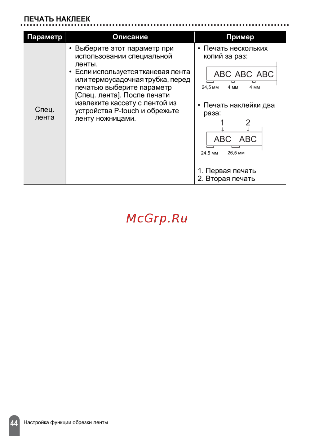 - Функцию протяжки рекомендуется использовать при печати на тканевой ленте которая обрезается ножницами p.14
