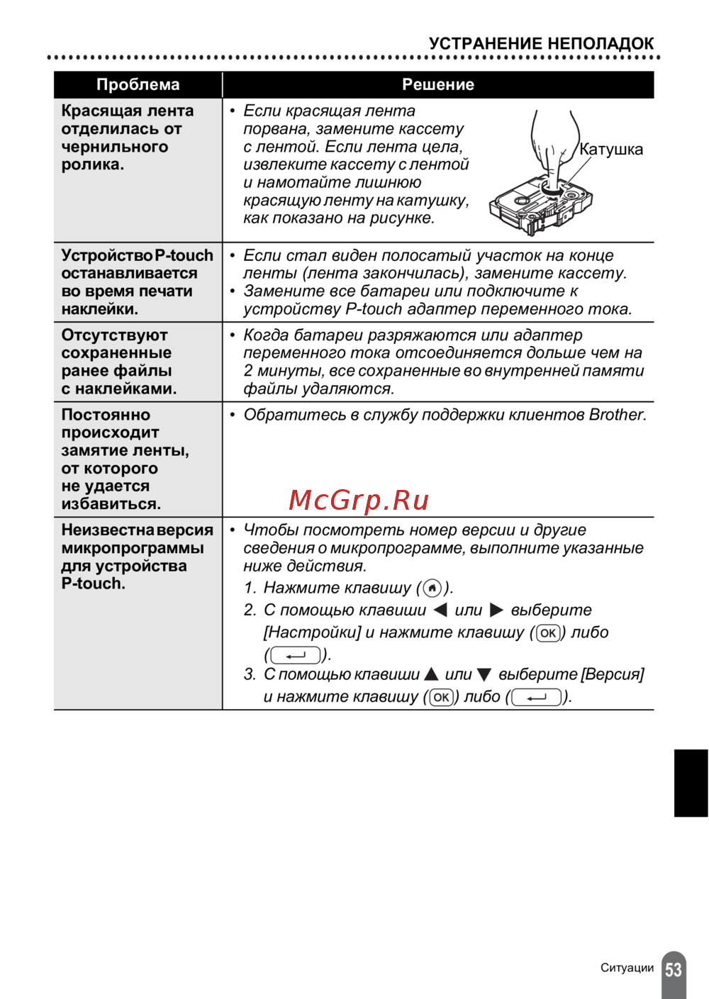 - Перезагрузка устройства p touch p.51