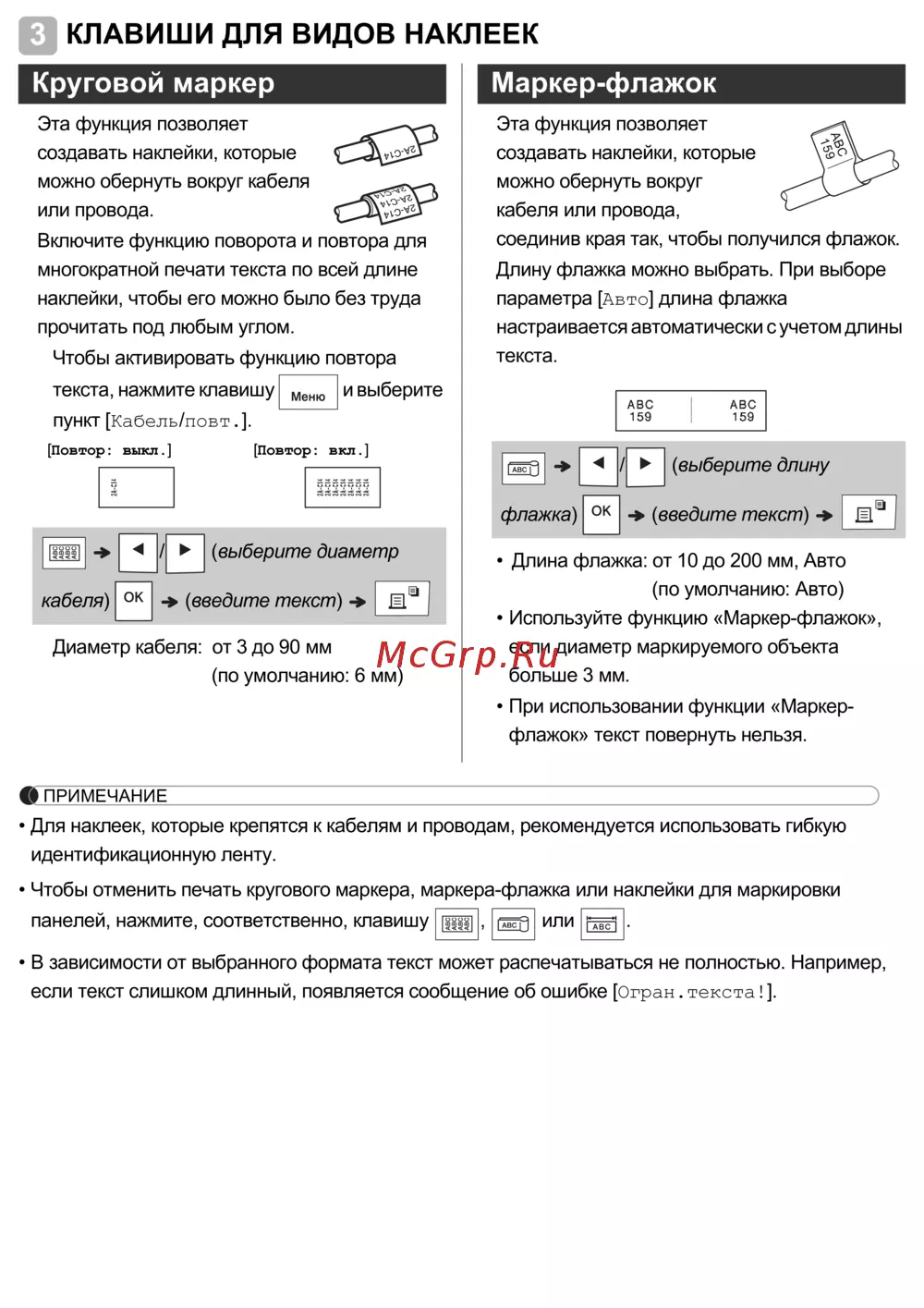 Brother PT-E110 — функции создания наклеек для кабелей и проводов [12/17]