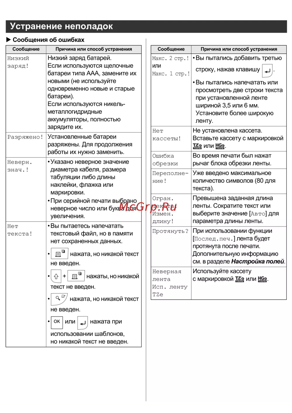 Узнайте, как устранить распространенные ошибки при печати, включая проблемы с зарядом, кассетами и длиной текста. Полезные советы для эффективной работы.