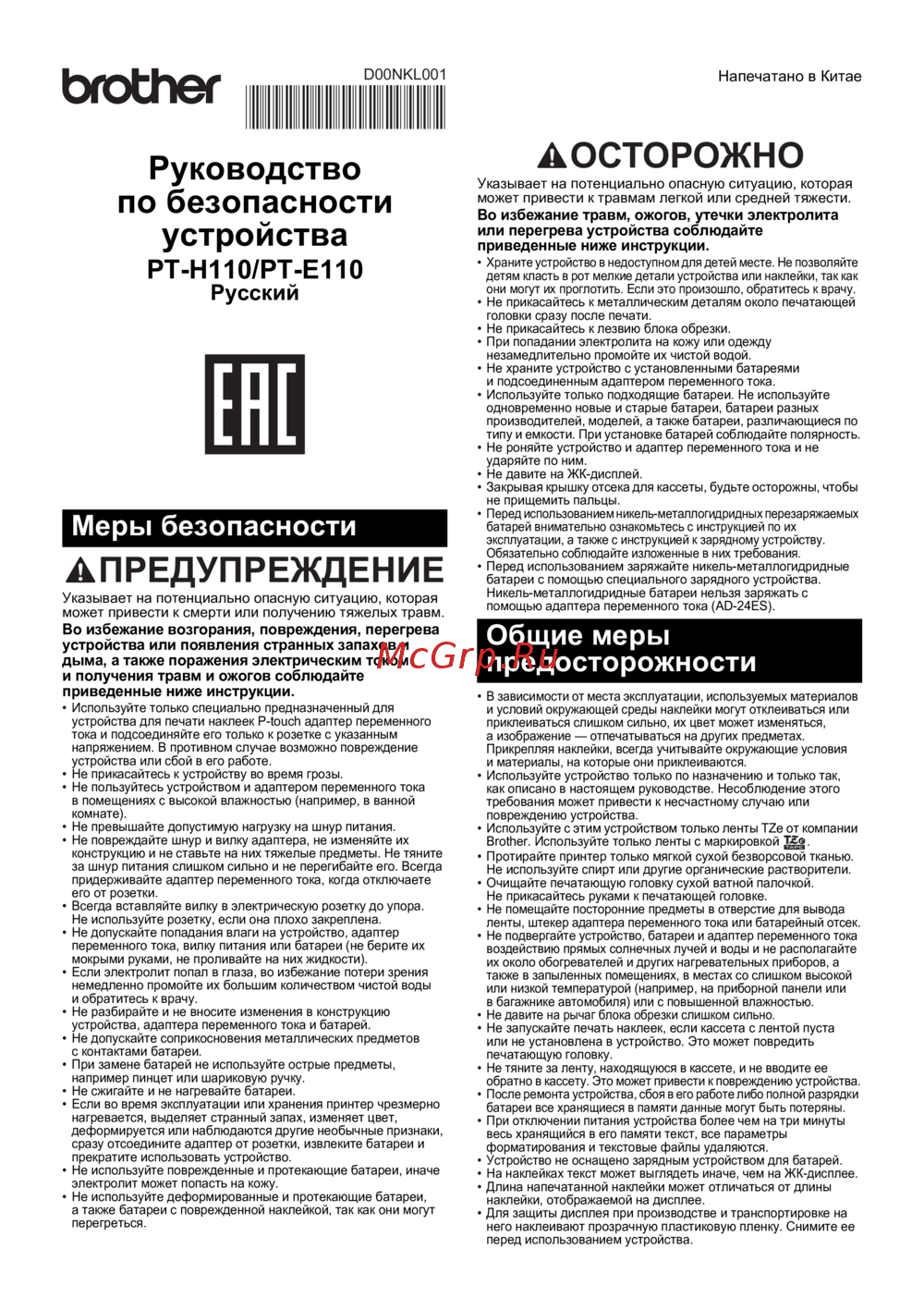 Brother PT-E110 — инструкции по эксплуатации и безопасности для принтера P-touch [1/4]