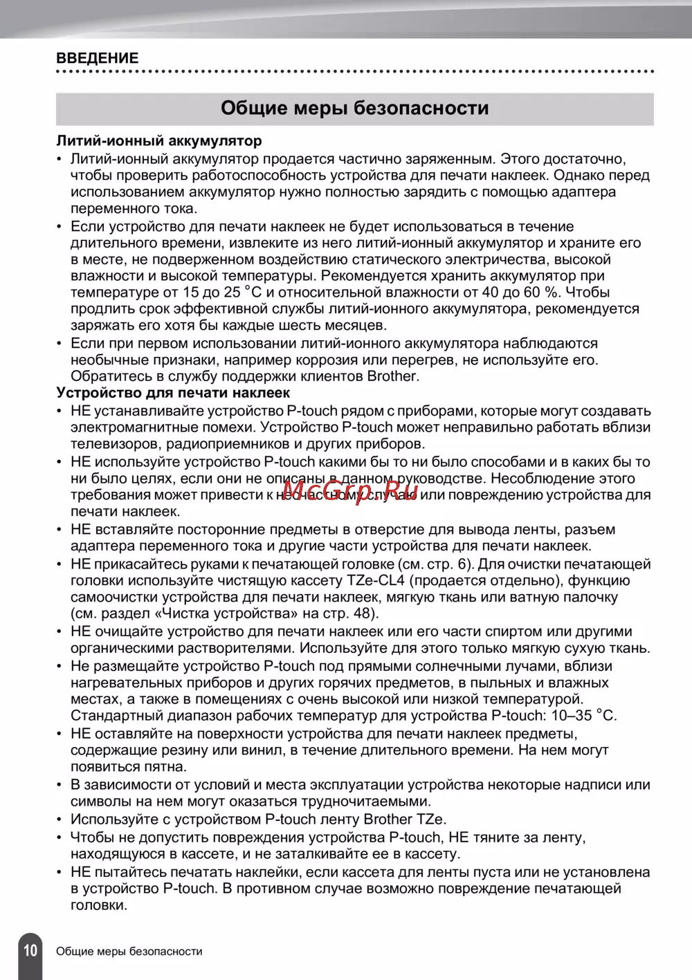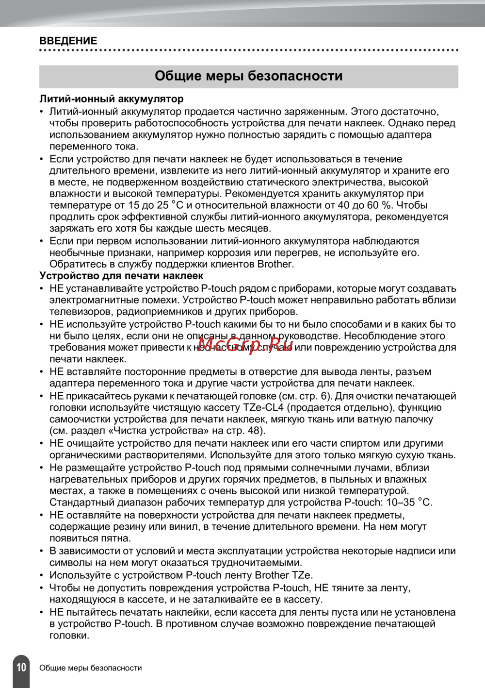 ![Brother PT-E300 [12/62] Общие меры безопасности](/views2/1261013/page12/bgc.png)