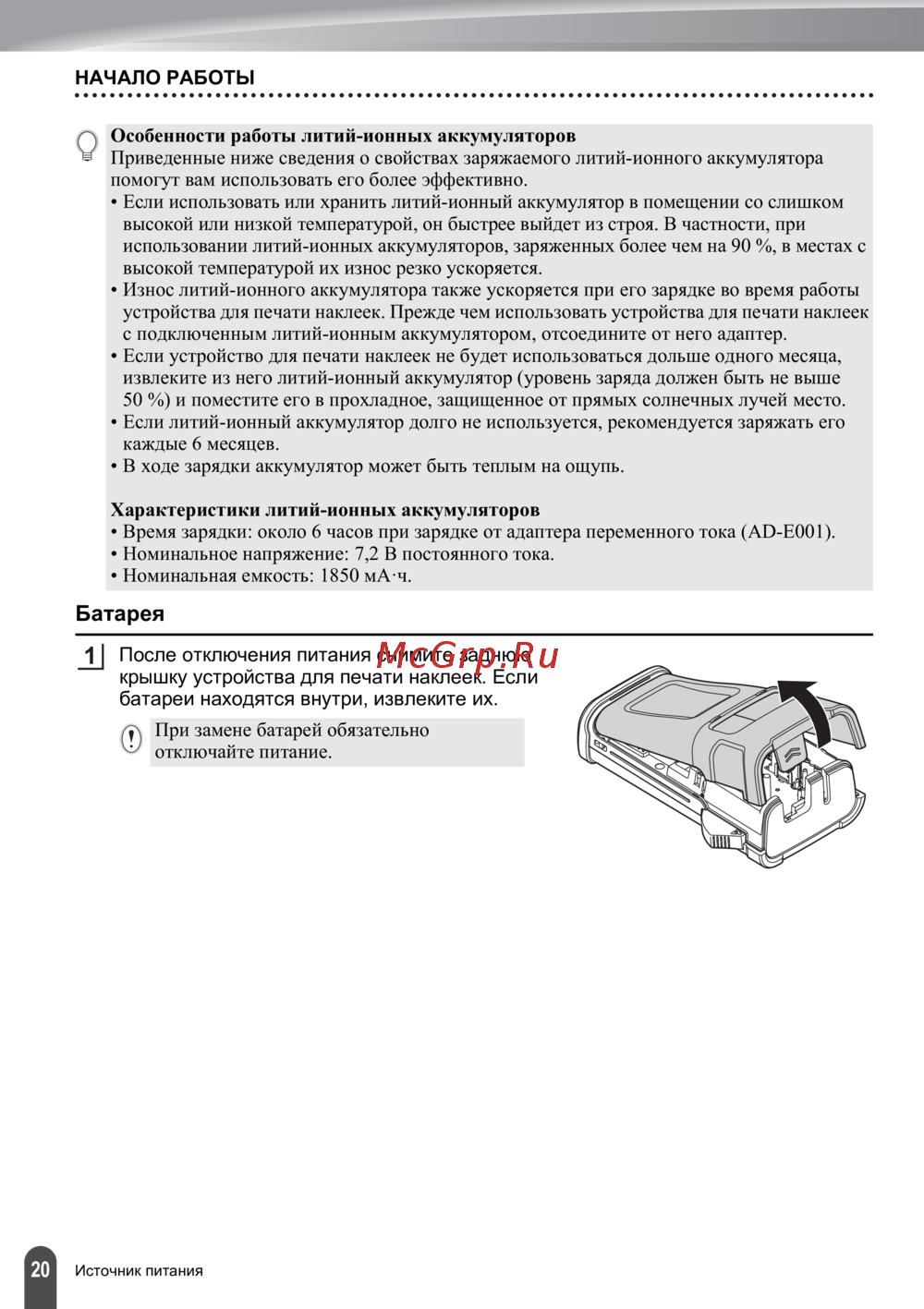 - Использование заряжаемого литий ионного аккумулятора p.20