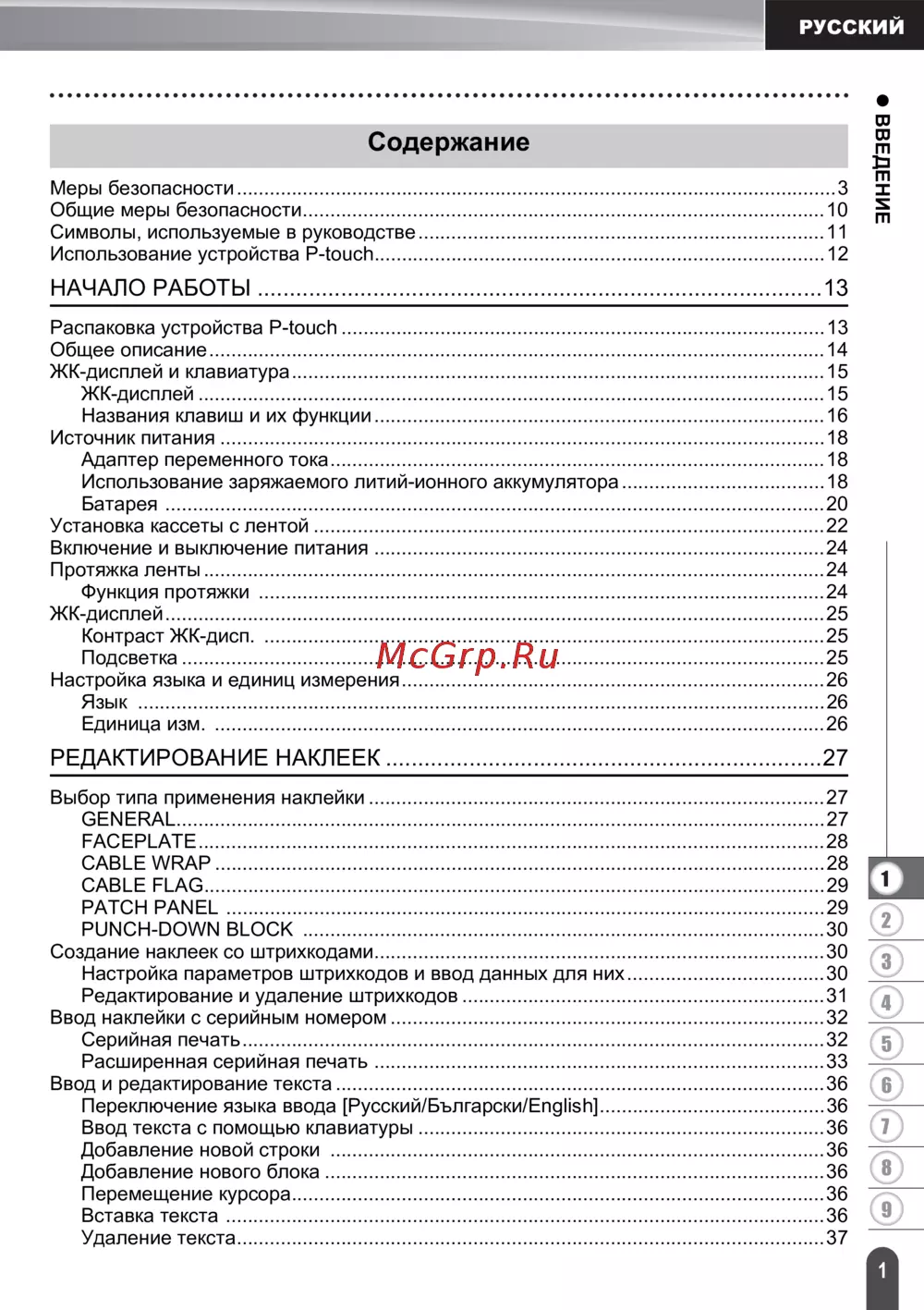 - Перезагрузка и обслуживание устройства p touch 47 p.4