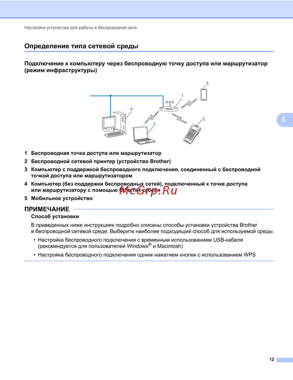 - Подключение к компьютеру через беспроводную точку доступа или маршрутизатор режим инфраструктуры p.17