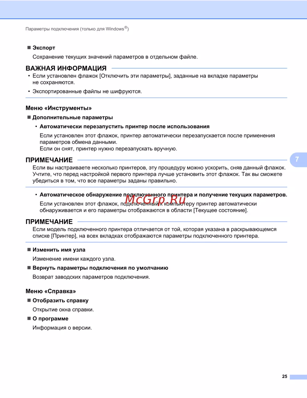 - Параметры подключения только для window p.26
