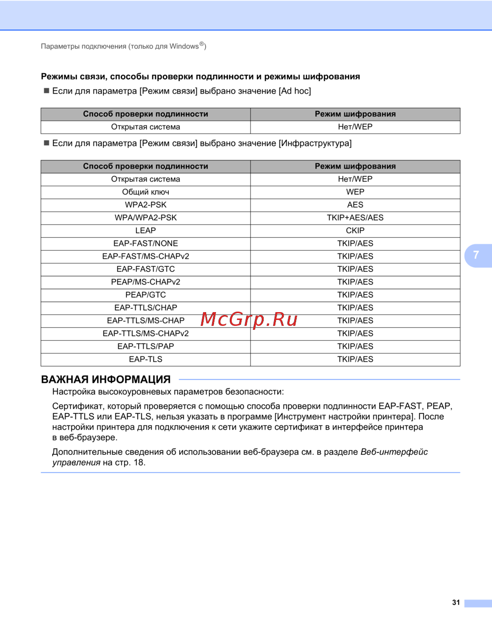 - Способы проверки подлинности и режимы шифрования для корпоративной беспроводной сети p.52