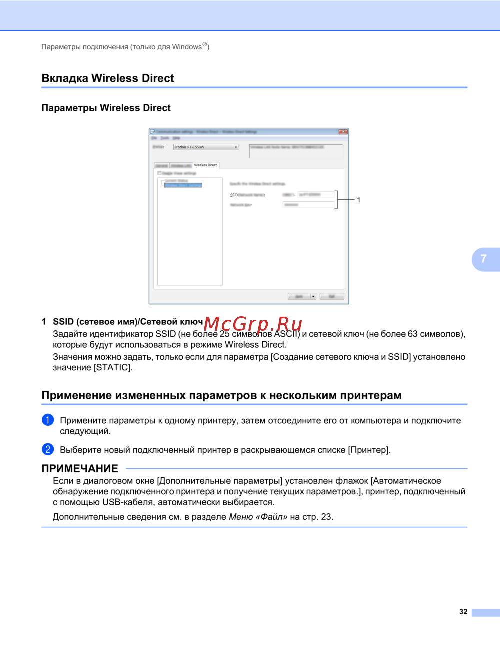 Узнайте, как задать SSID и сетевой ключ для режима Wireless Direct на Windows. Примените настройки к нескольким принтерам быстро и удобно.