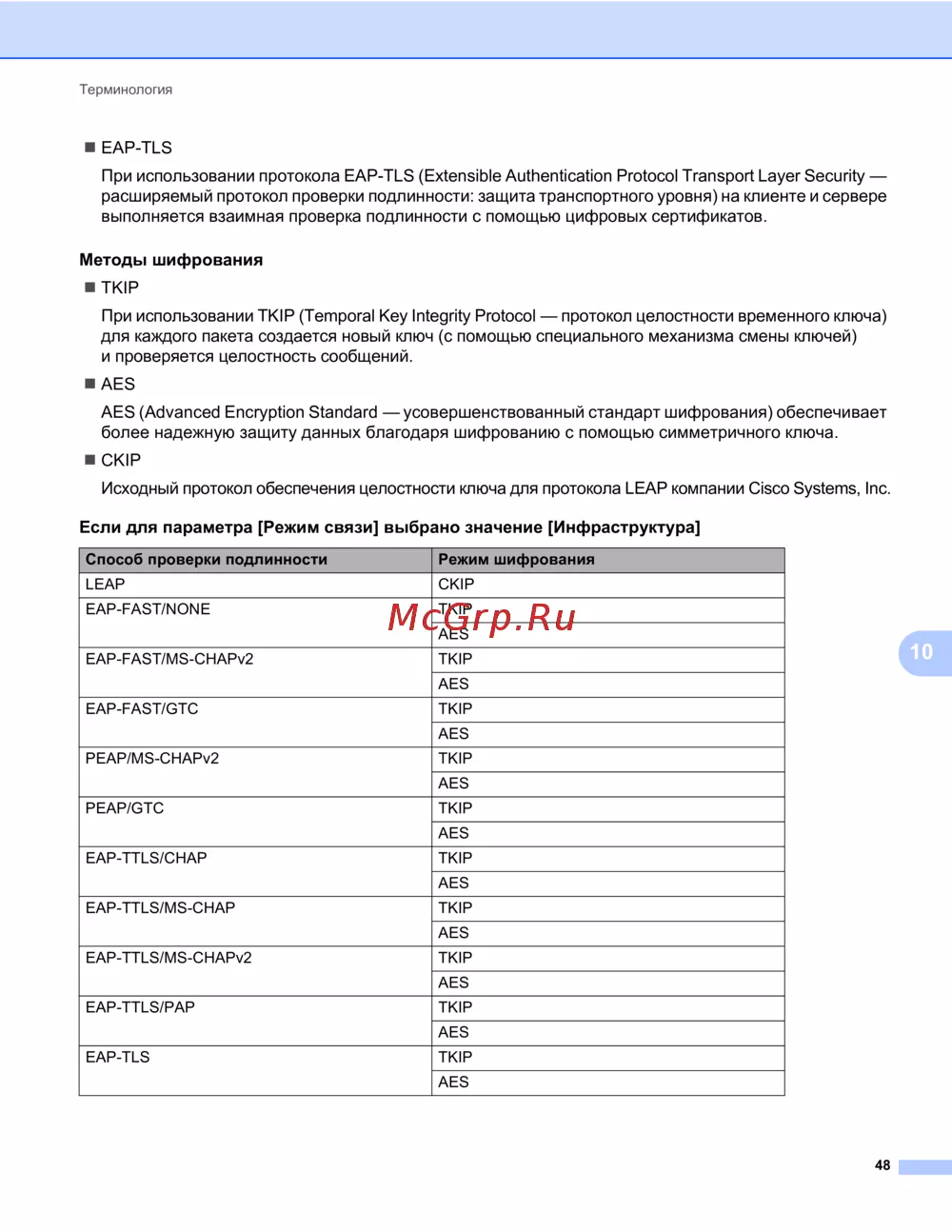 - Способы проверки подлинности и режимы шифрования для корпоративной беспроводной сети p.52