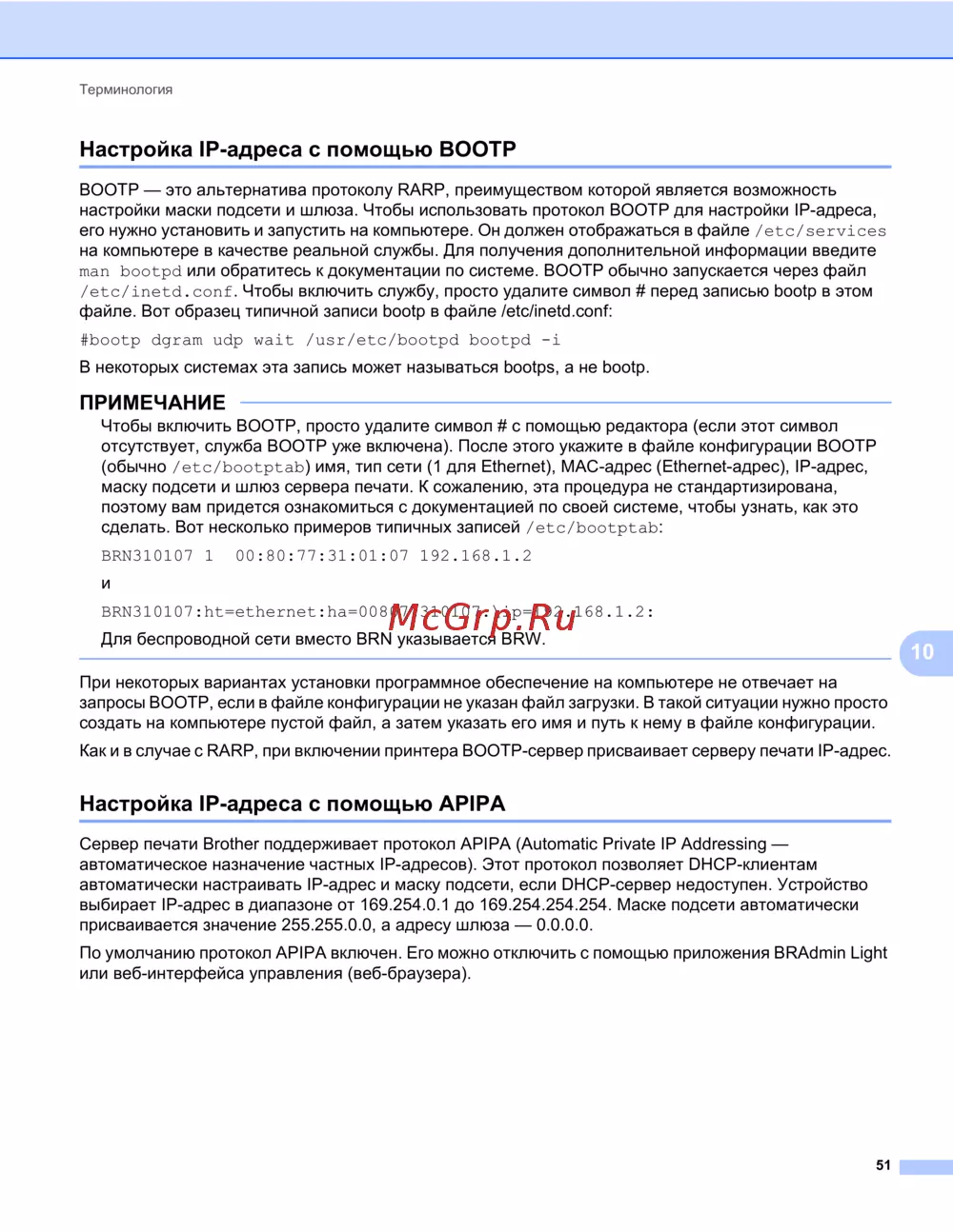 Сервер печати Brother поддерживает протокол APIPA (Automatic Private IP Addressing —