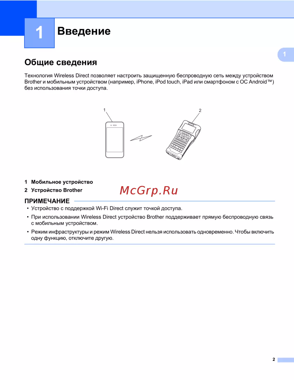 • При использовании Wireless Direct устройство Brother поддерживает прямую беспроводную связь