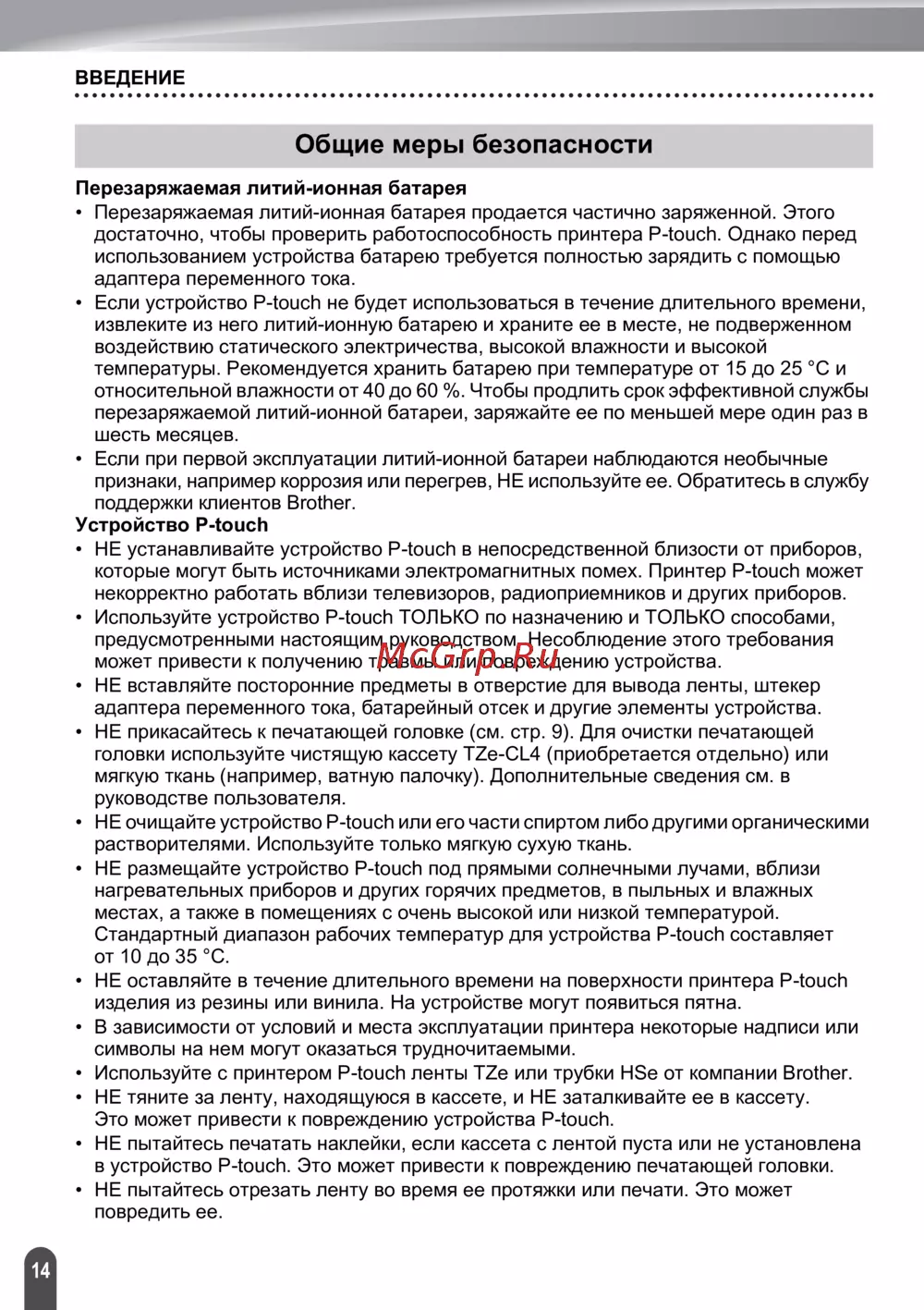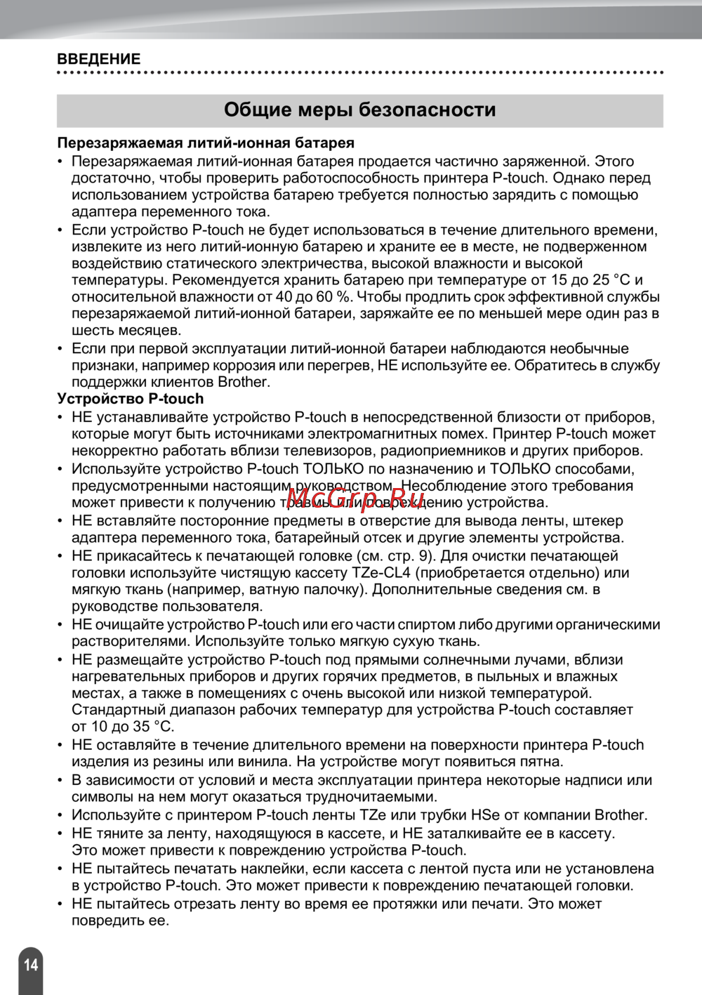 ![Brother PT-E550W [14/48] Общие меры безопасности](/views2/1470163/page14/bge.png)