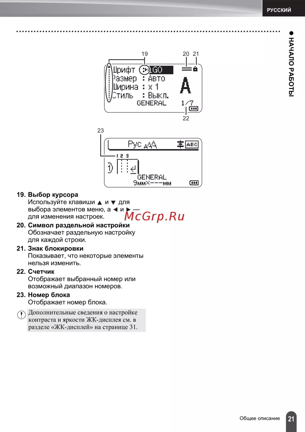 Brother PT-E550W — общее руководство по настройке ЖК-дисплея и элементов управления [21/48]