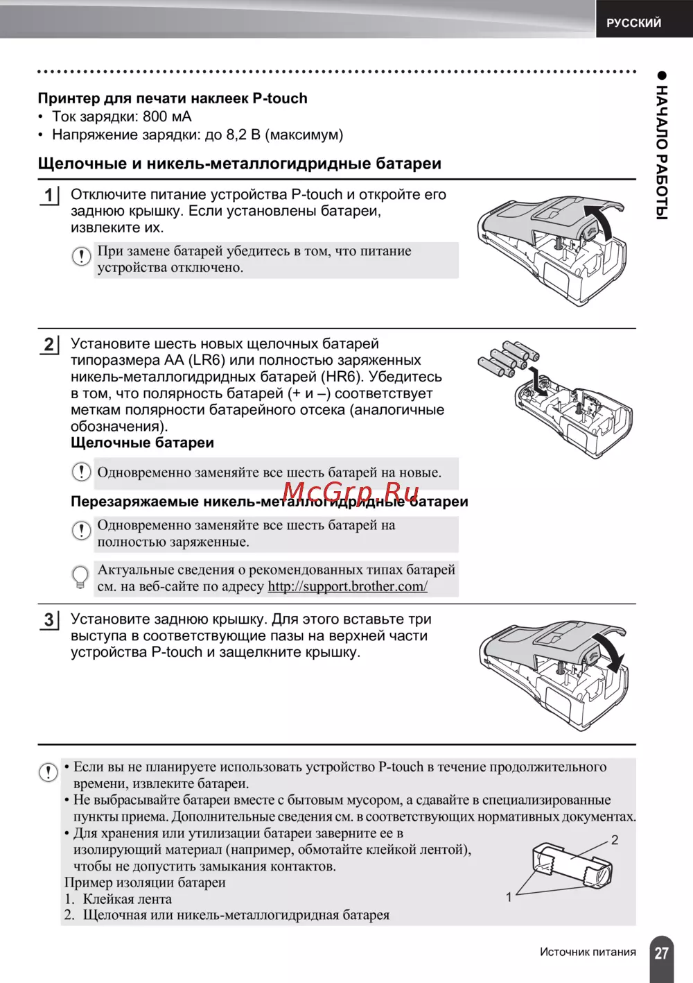![Brother PT-E550W [27/48] Щелочные и никель металлогидридные батареи](/views2/1470163/page27/bg1b.png)