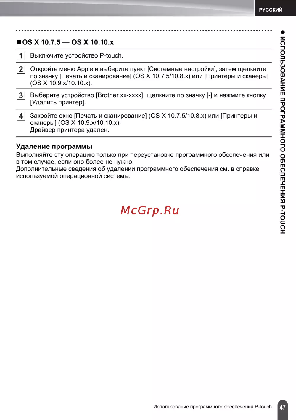 Brother PT-E550W — инструкция по удалению программного обеспечения для печати [47/48]