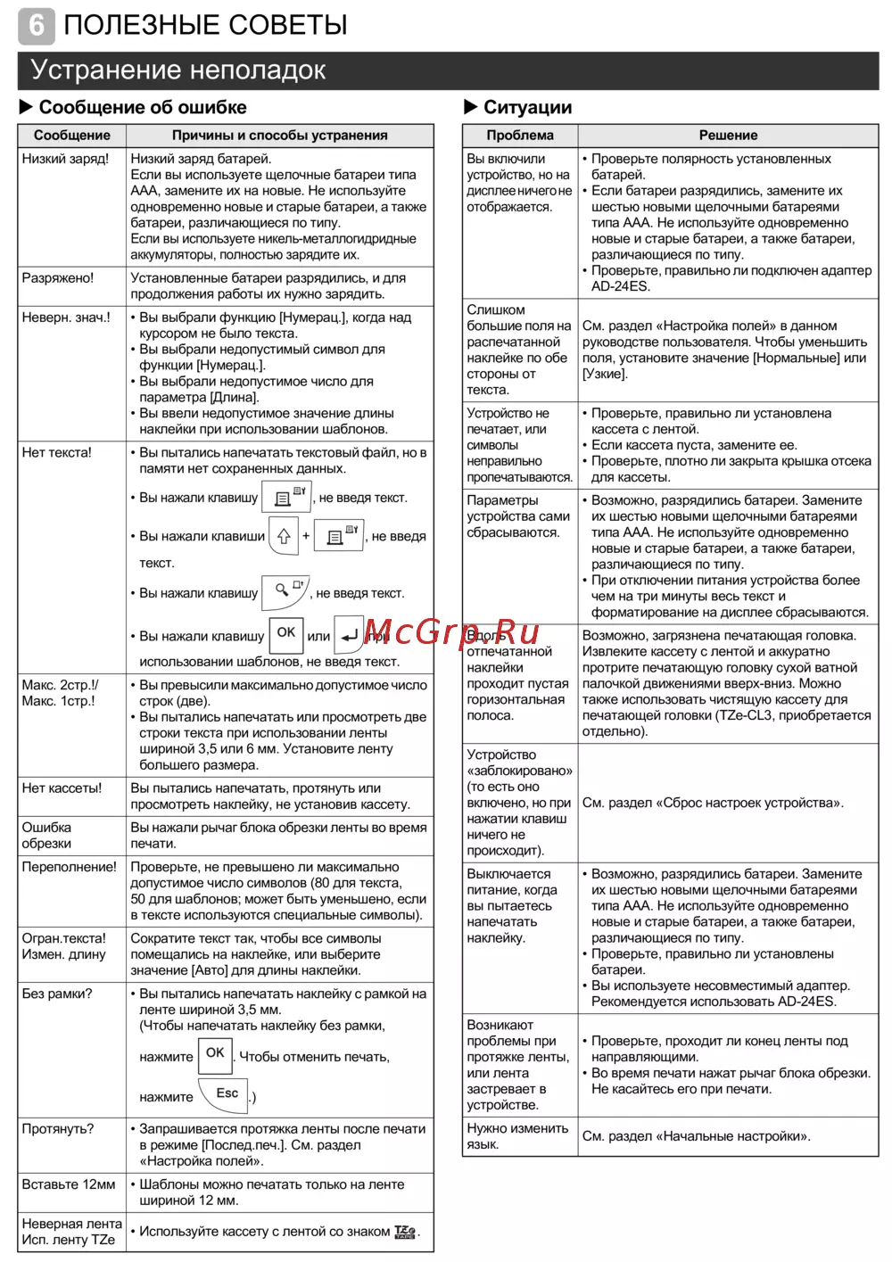Brother PT-H110 — устранение неполадок и советы по работе с устройством [13/16]