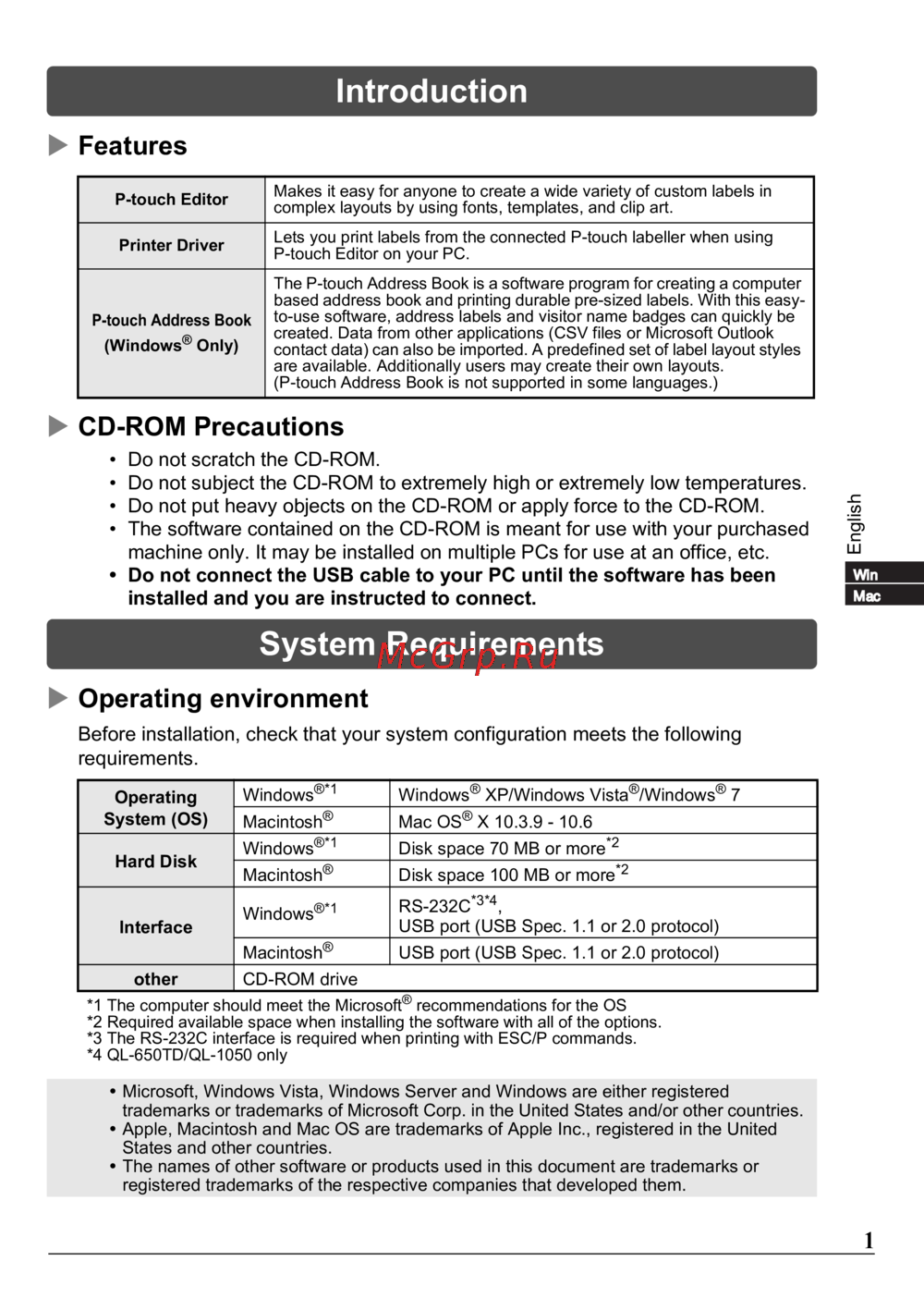 Brother QL-500 — system Requirements and Features for Custom Label Software [2/14]