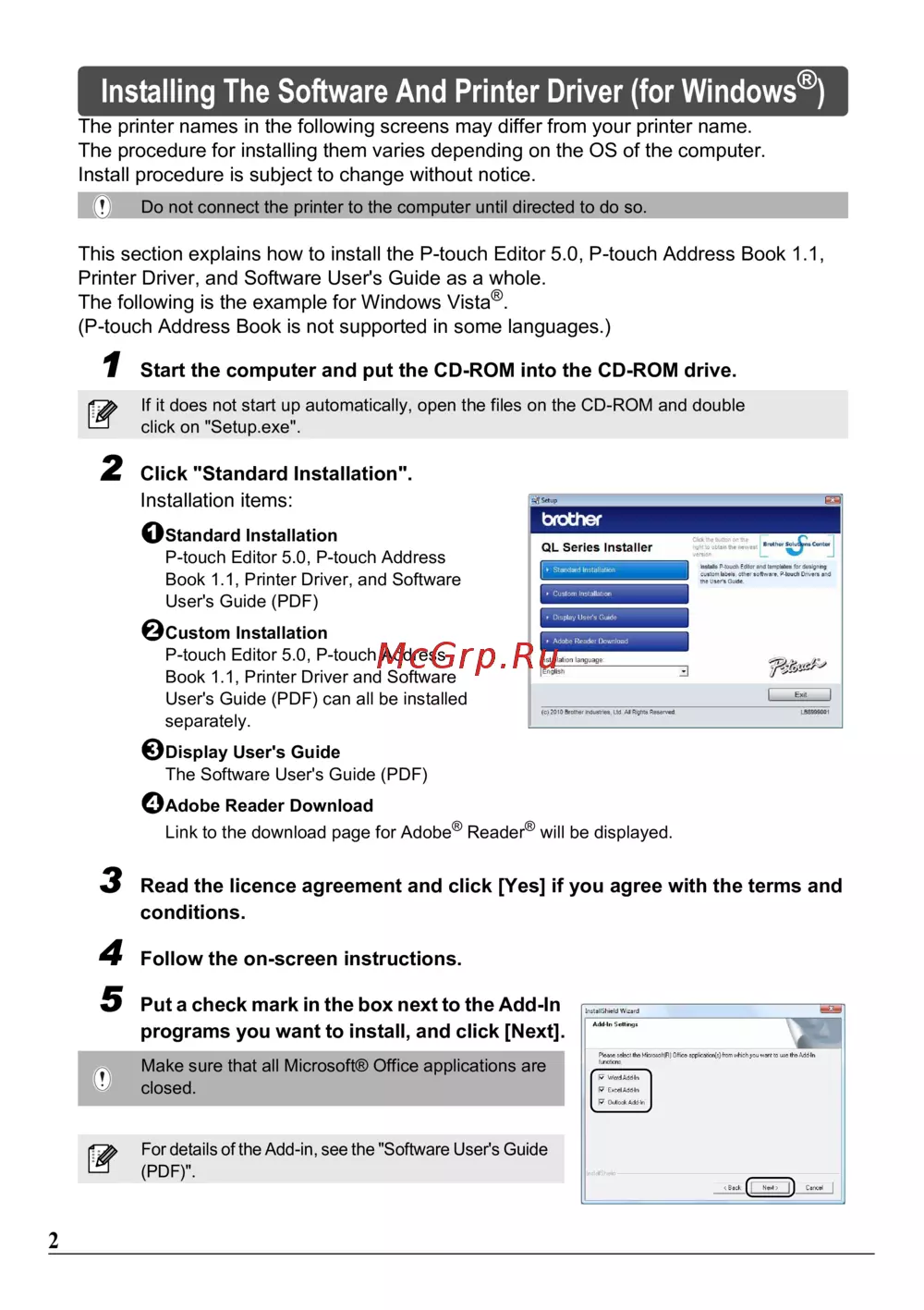 Brother QL-500 — установка программного обеспечения и драйвера принтера [3/14]
