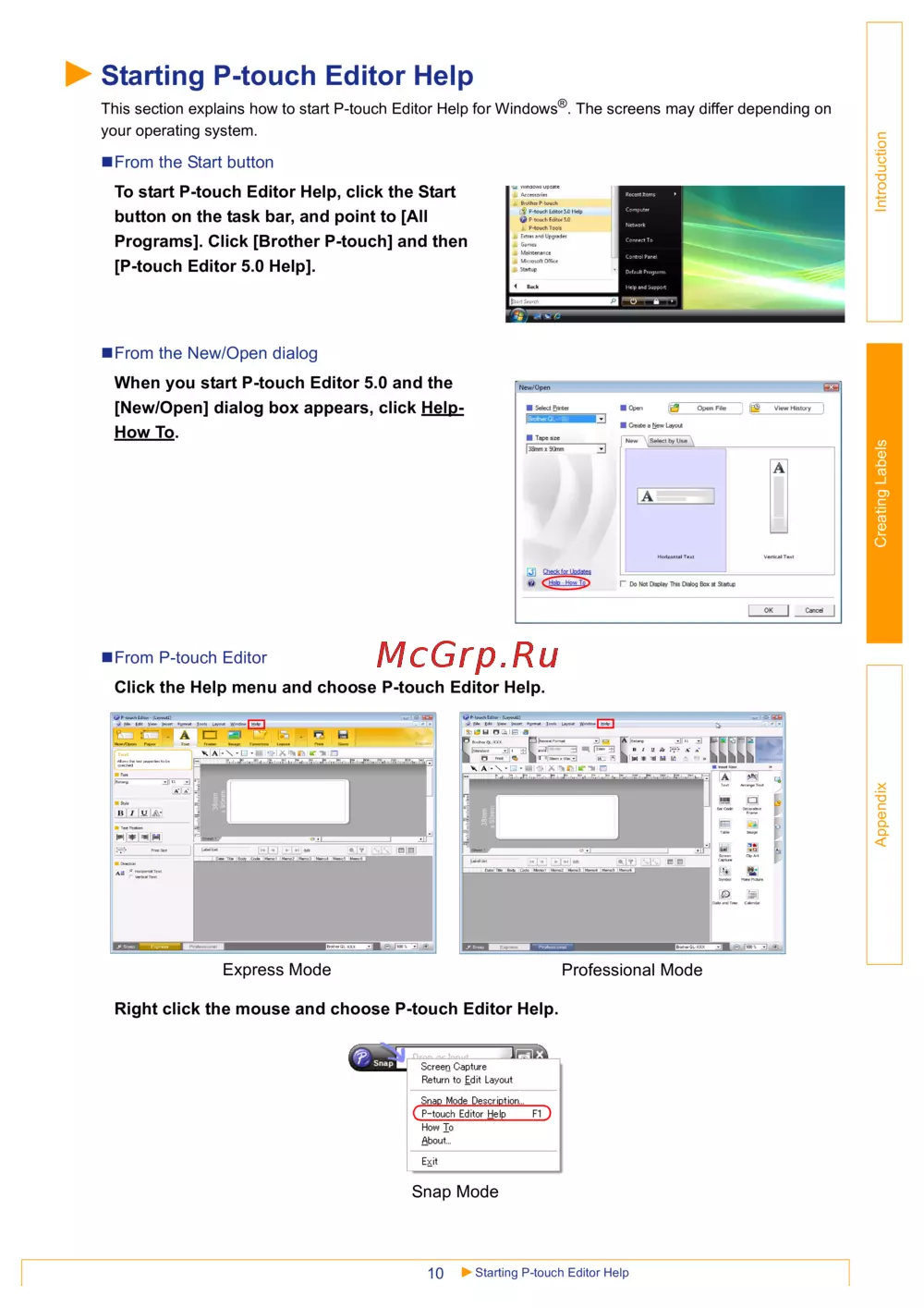 - When you start p touch editor 5 and the new open dialog box appears click help how to p.44