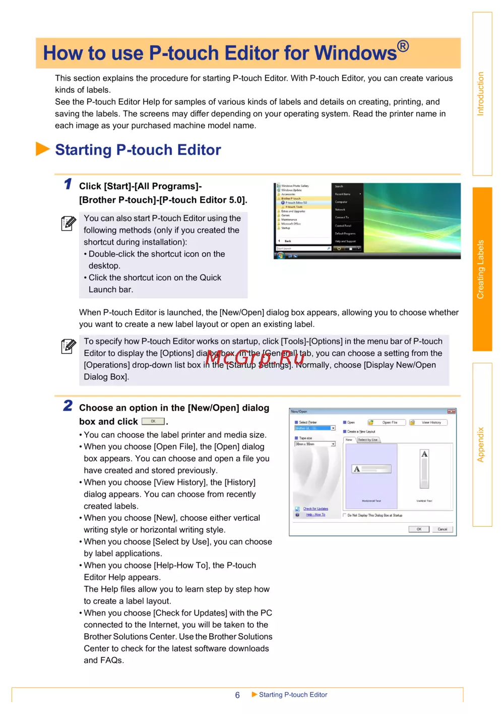 - When you start p touch editor 5 and the new open dialog box appears click help how to p.44