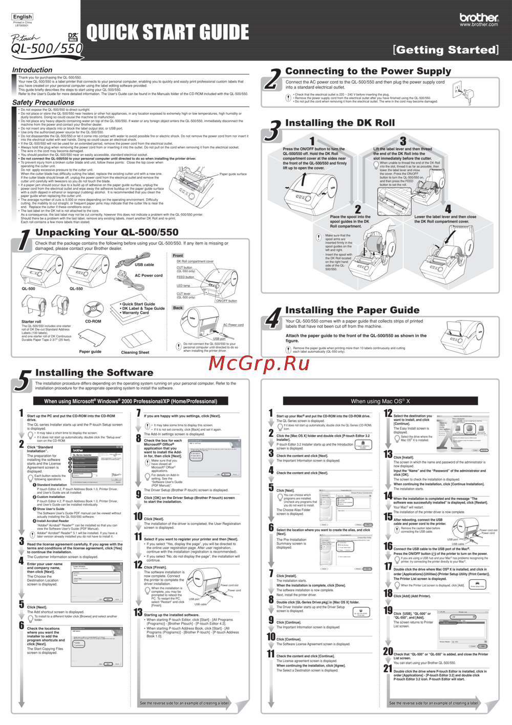 This guide briefly describes the steps to start using your QL-500/550.