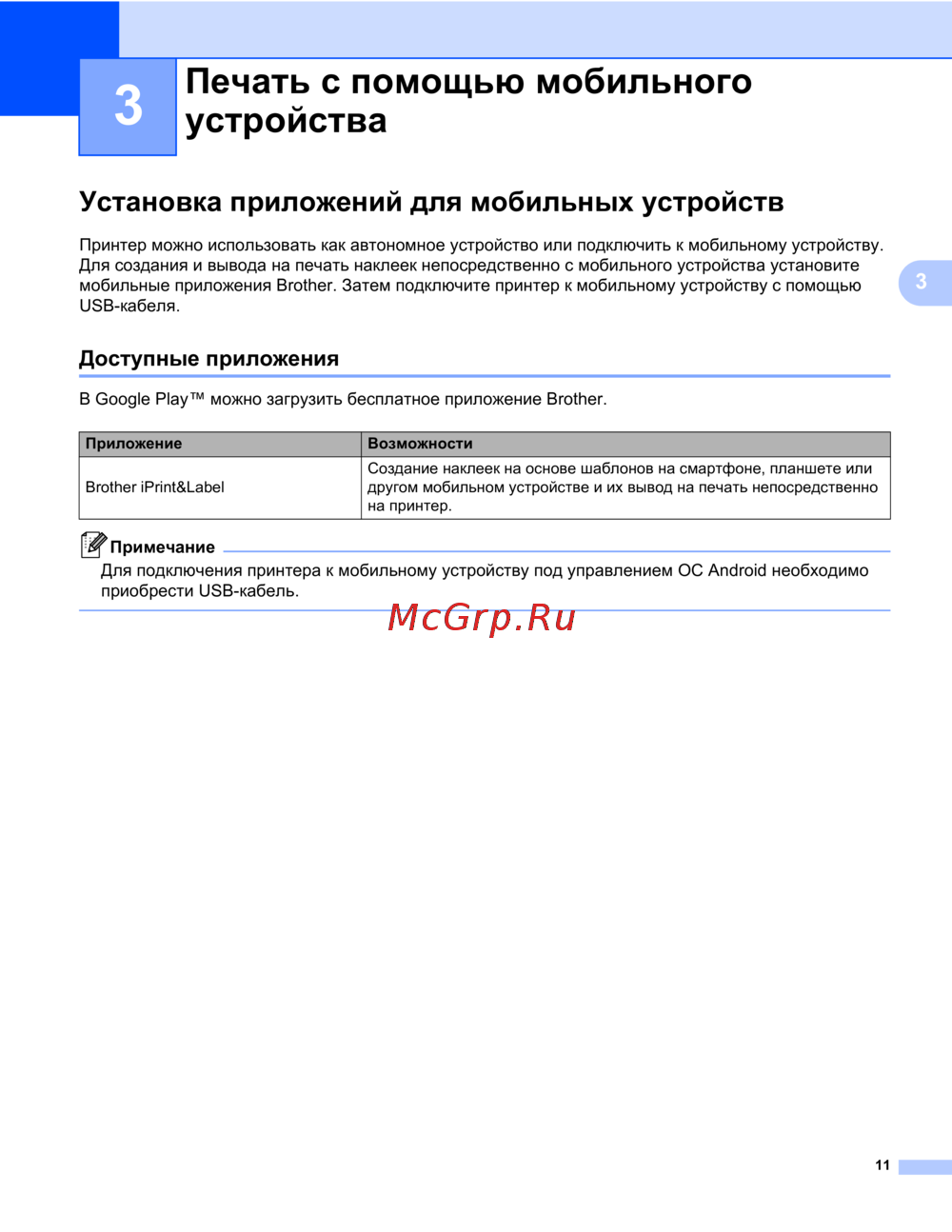 В Google Play™ можно загрузить бесплатное приложение Brother.