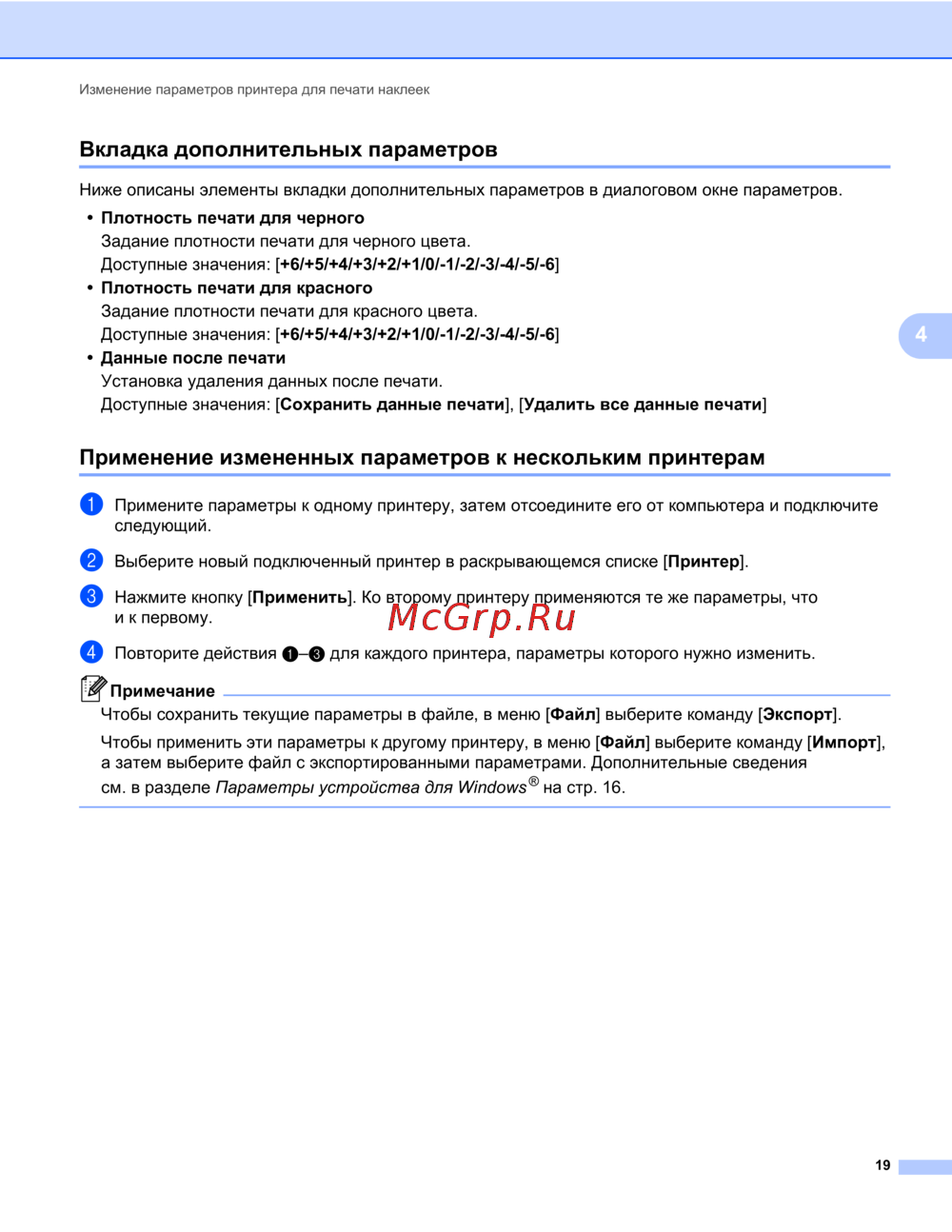 Чтобы применить эти параметры к другому принтеру, в меню [Файл] выберите команду [Импорт],