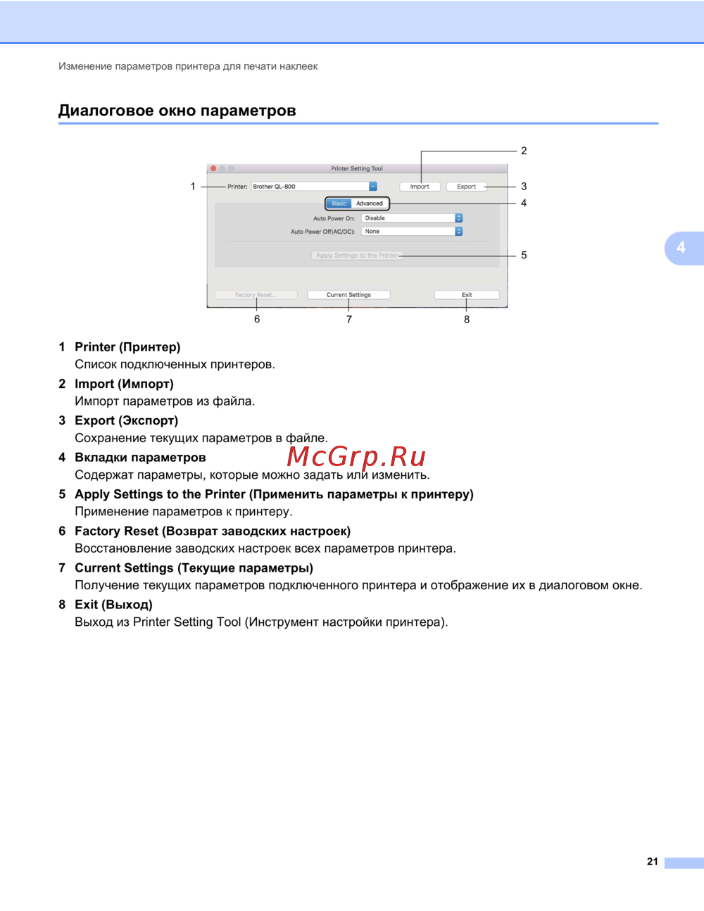Узнайте, как изменить параметры принтера для печати наклеек. Импортируйте и экспортируйте настройки, применяйте их и восстанавливайте заводские параметры.