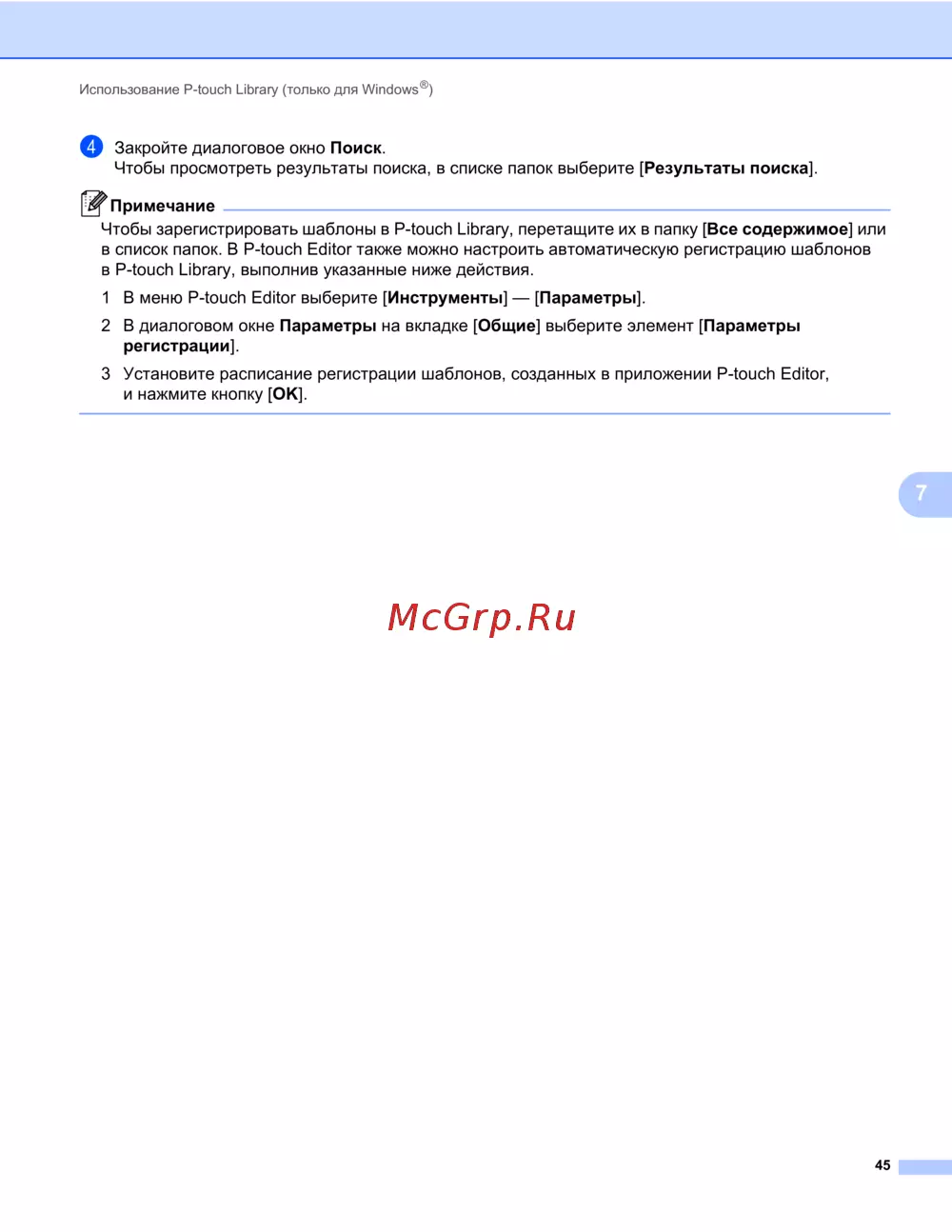 в список папок. В P-touch Editor также можно настроить автоматическую регистрацию шаблонов