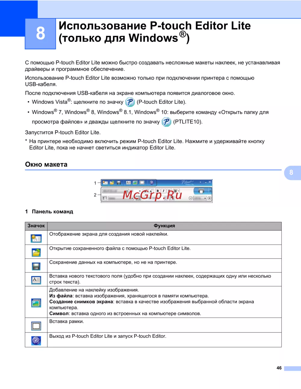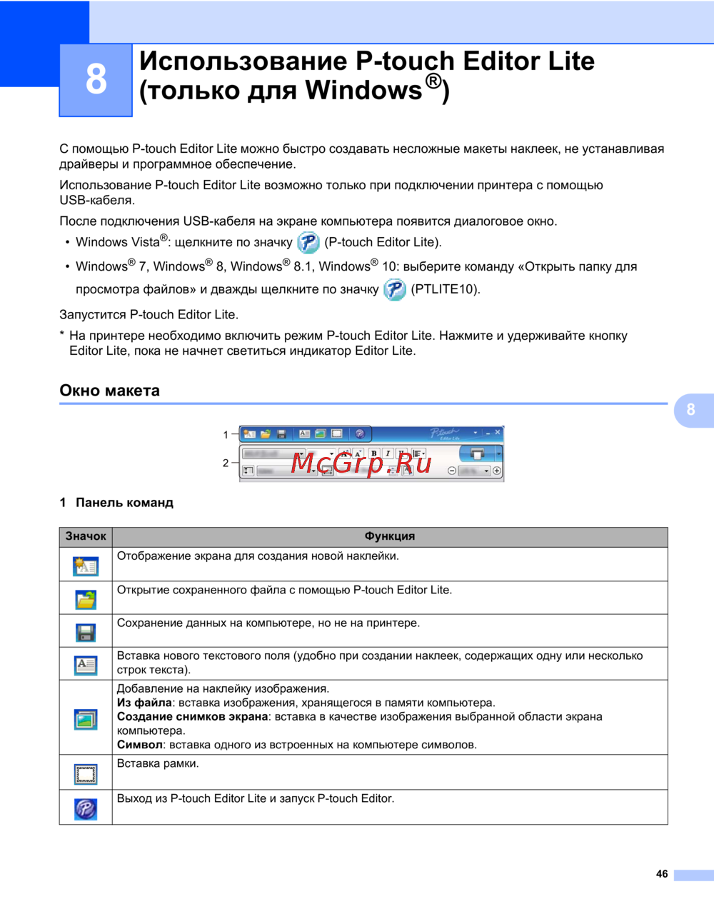 Выход из P-touch Editor Lite и запуск P-touch Editor.