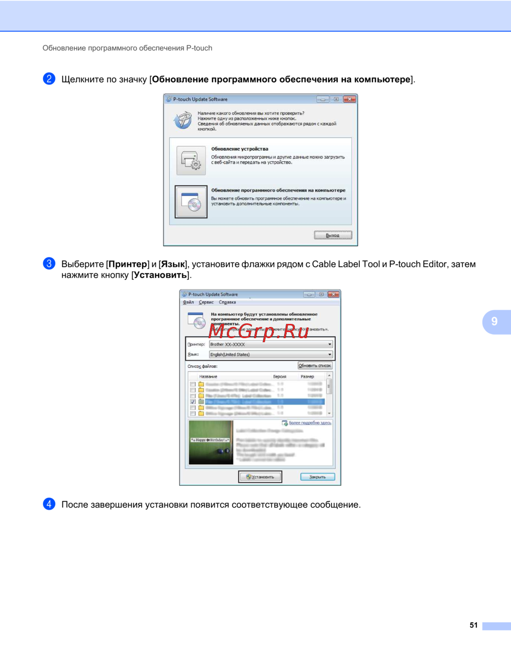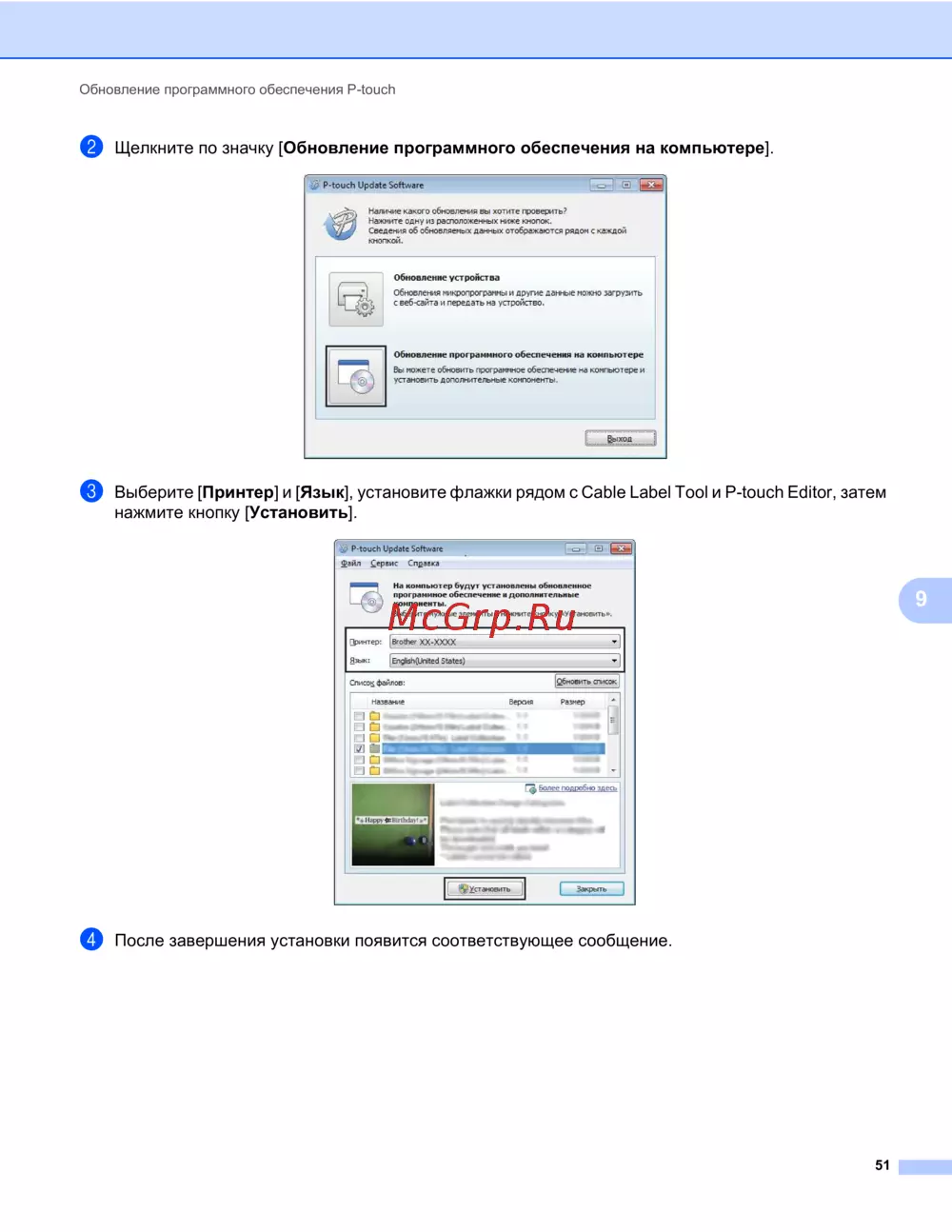 - С нашего веб сайта install brother загрузите программу установки приложений и драйвера принтера p.17