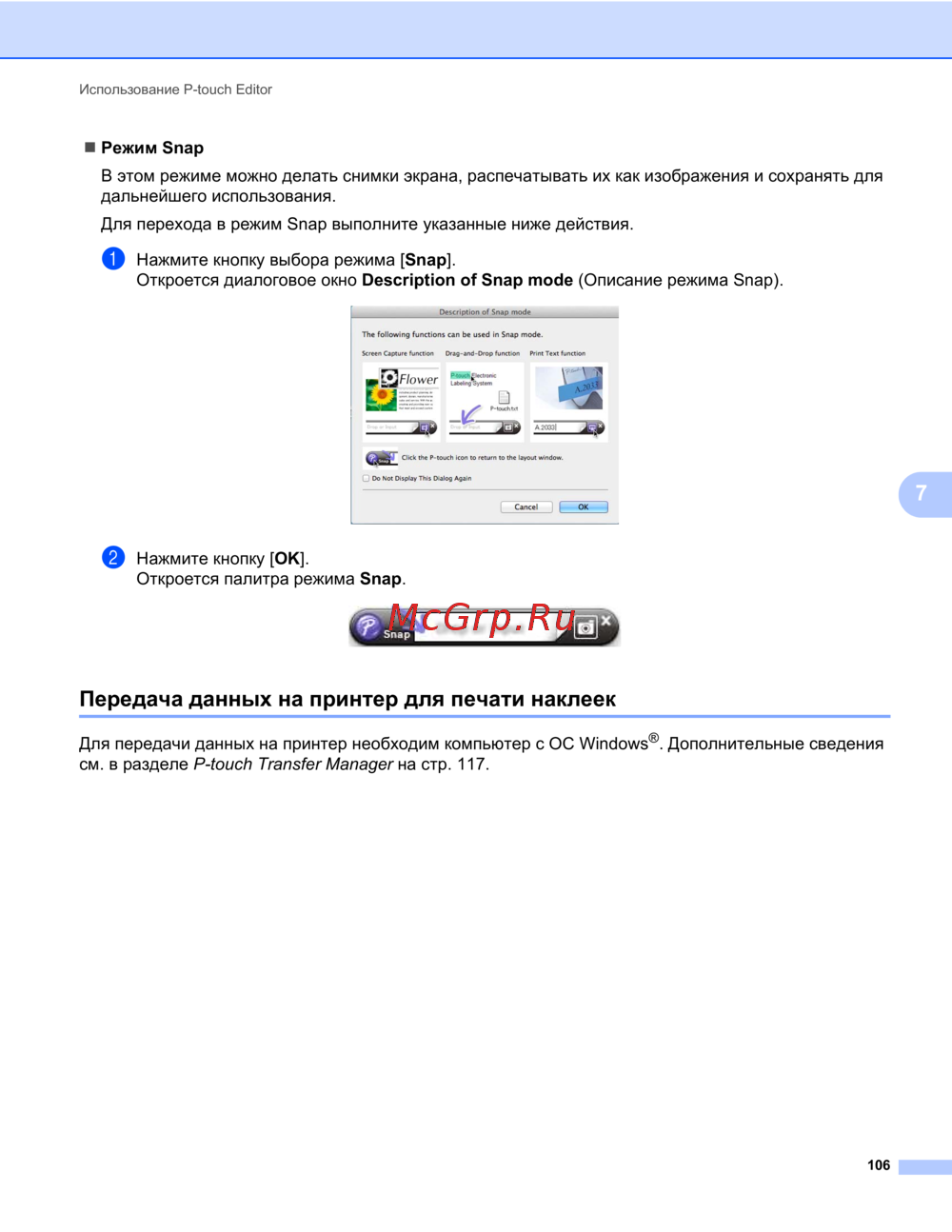 - Передача шаблонов с помощью p touch transfer express только для window p.8