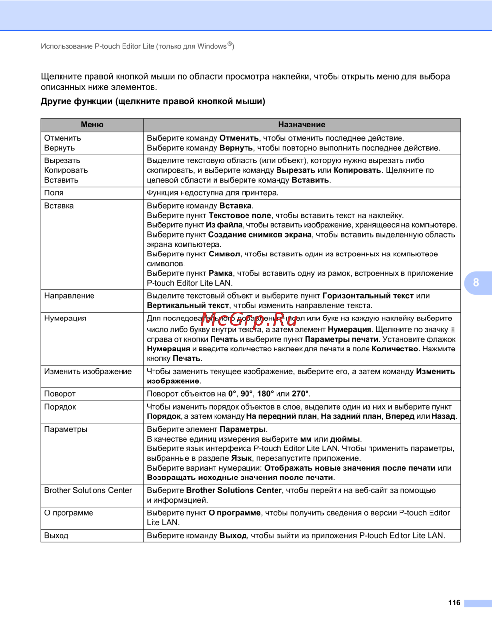 - Использование p touch editor 96 p.8