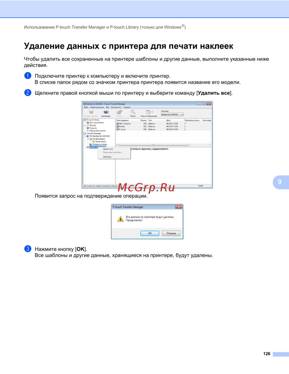 Brother QL-810W — как удалить данные с принтера для печати наклеек [136/207]