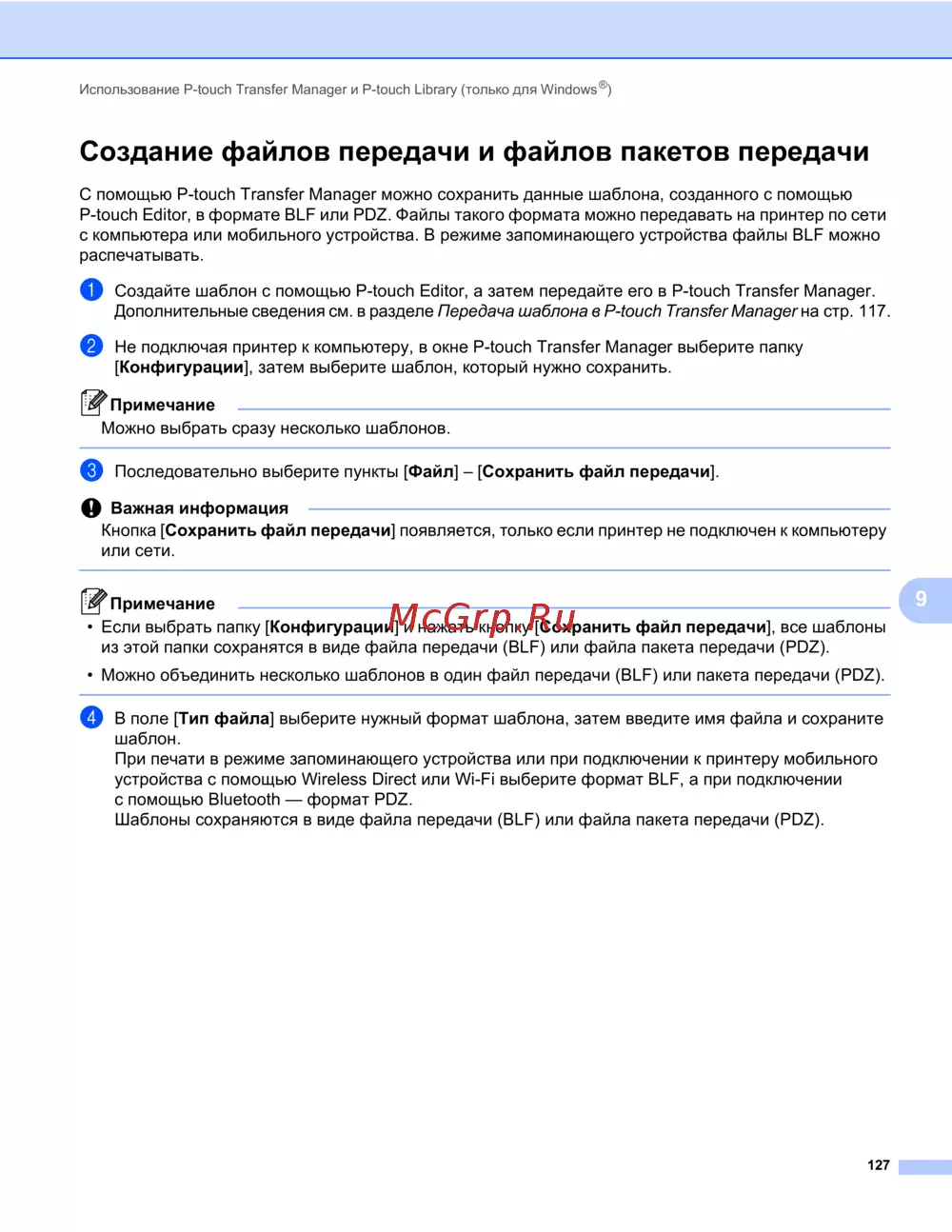 Использование P-touch Transfer Manager и P-touch Library (только для Windows