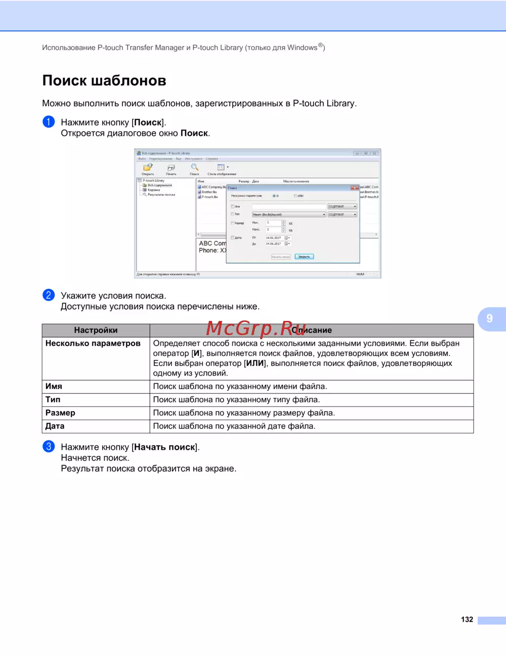 Узнайте, как эффективно искать шаблоны в P-touch Library с помощью различных условий поиска. Пошаговая инструкция для пользователей Windows.