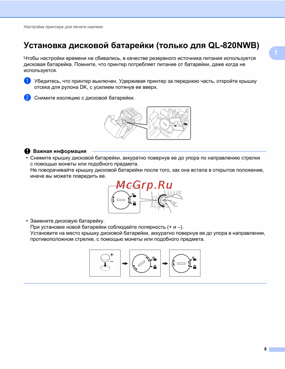 - Установка дисковой батарейки только для ql 820nwb p.18