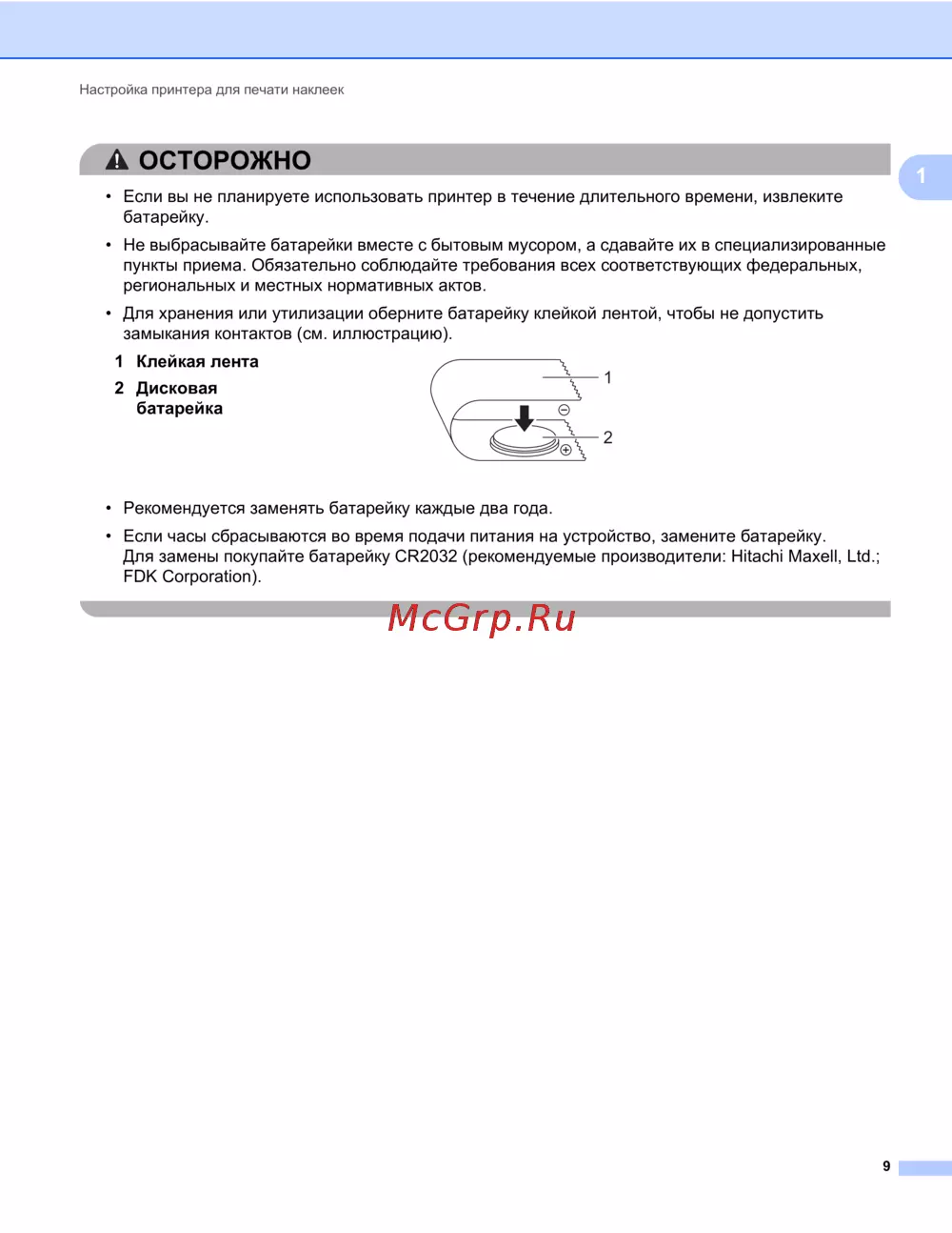 • Для хранения или утилизации оберните батарейку клейкой лентой, чтобы не допустить