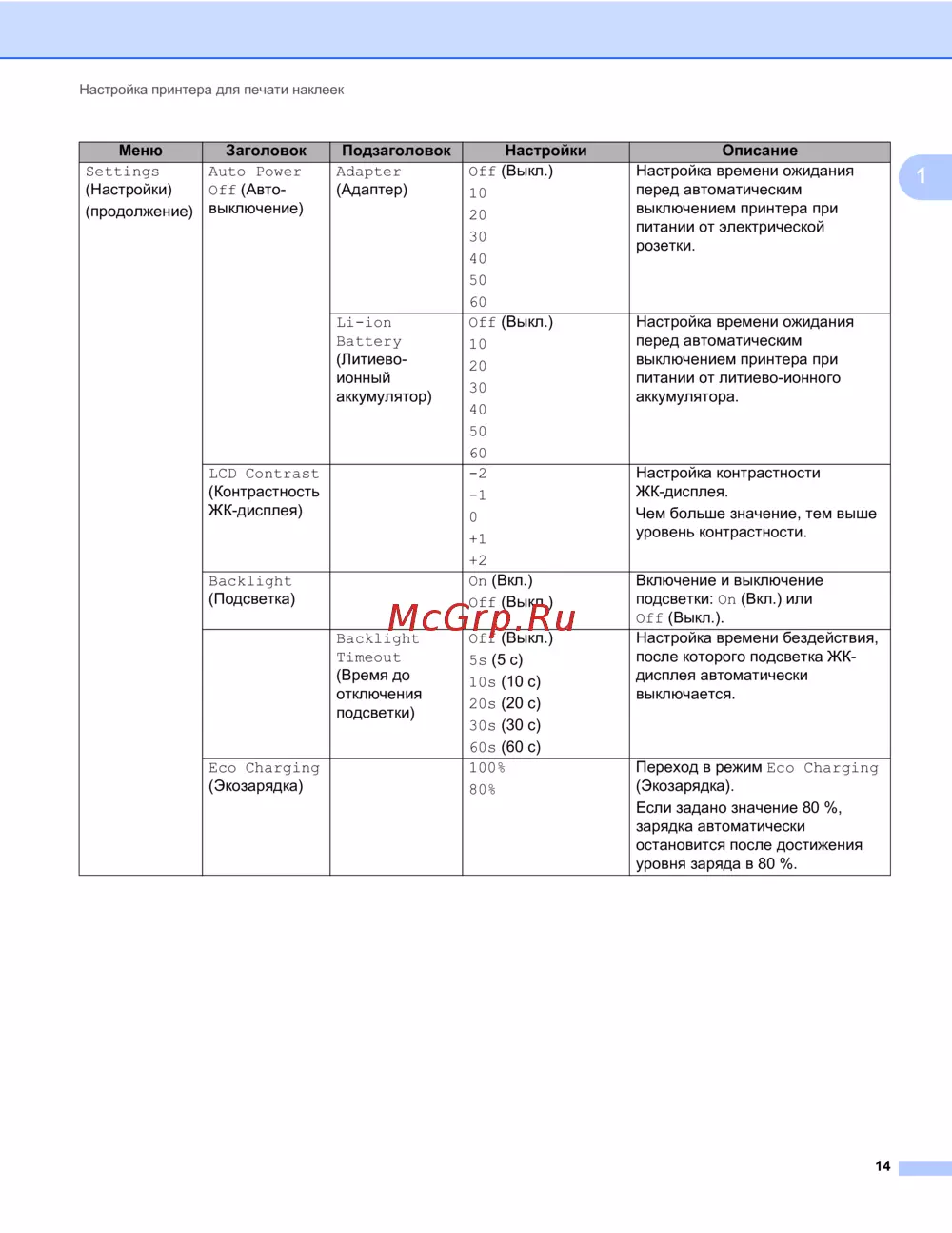 Узнайте, как правильно настроить принтер для печати наклеек, включая параметры авто-выключения, контрастности ЖК-дисплея и экозарядки. Подробное руководство.